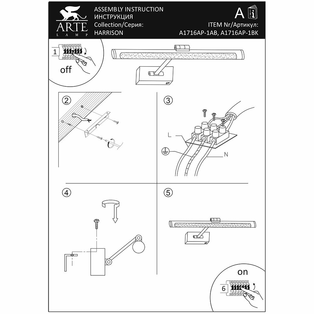 Подсветка для картин Arte Lamp Harrison A1716AP-1AB