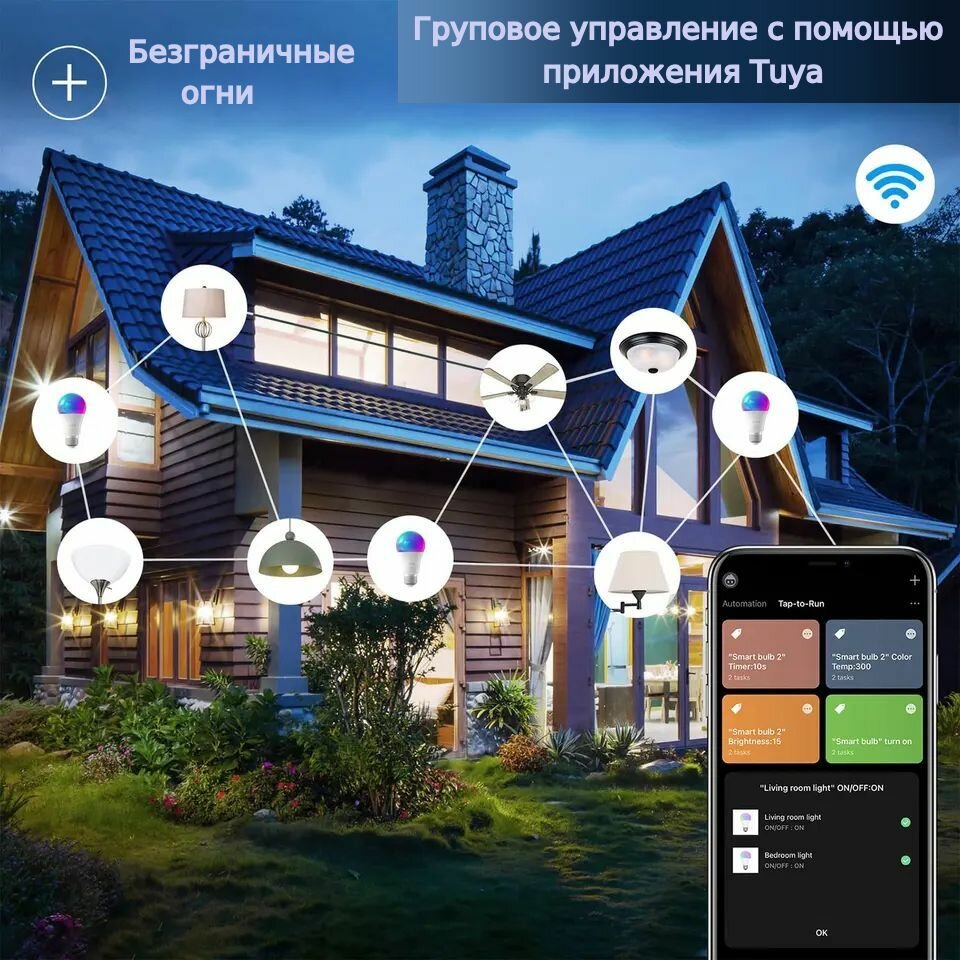 Умная светодиодная лампочка RGB с Wi-Fi,Яндекс Алисой,Марусей,Google Home,9W,Е27,Smart Bulb интересное: