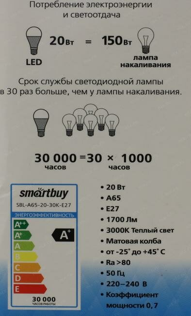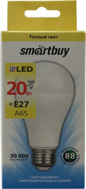 Ниже Вы можете прочитать отзывы на Светодиодная лампа Smartbuy SBL-A65-20-30K-E27 теплый свет, ознакомится с подробными характеристиками, посмотреть интересные обзоры и фотографии на Светодиодная лампа Smartbuy SBL-A65-20-30K-E27 теплый свет.