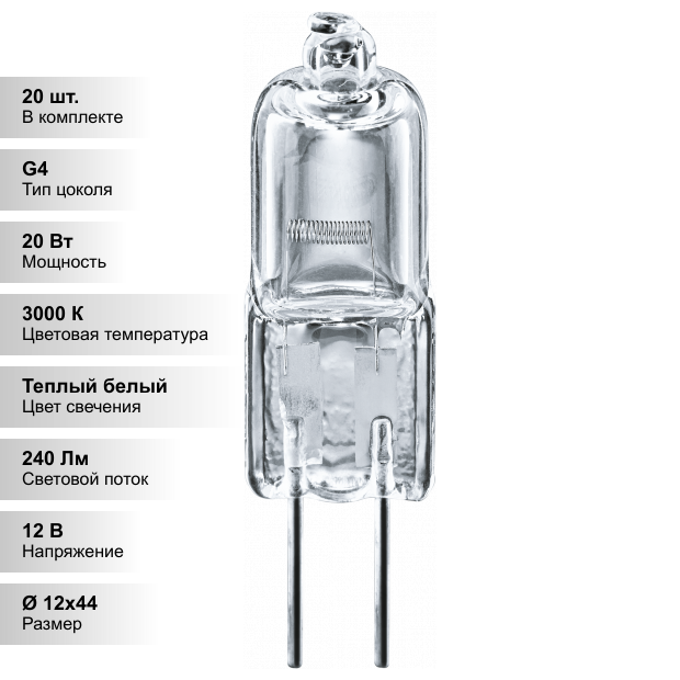 Купить (20 шт.) Галогенная лампочка Navigator JC 20Вт 12В G4
