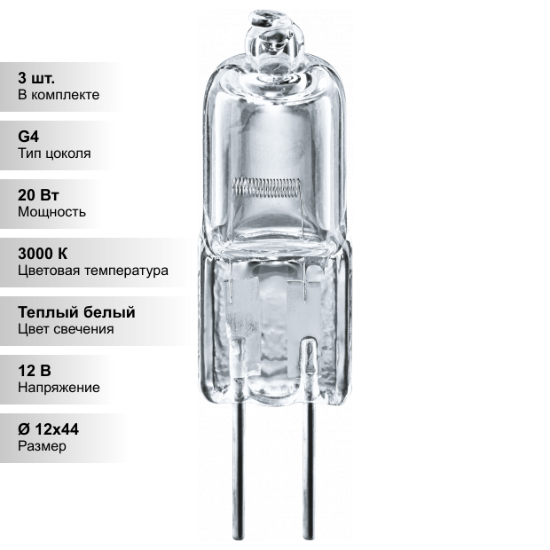 Купить (3 шт.) Галогенная лампочка Navigator JC 20Вт 12В G4