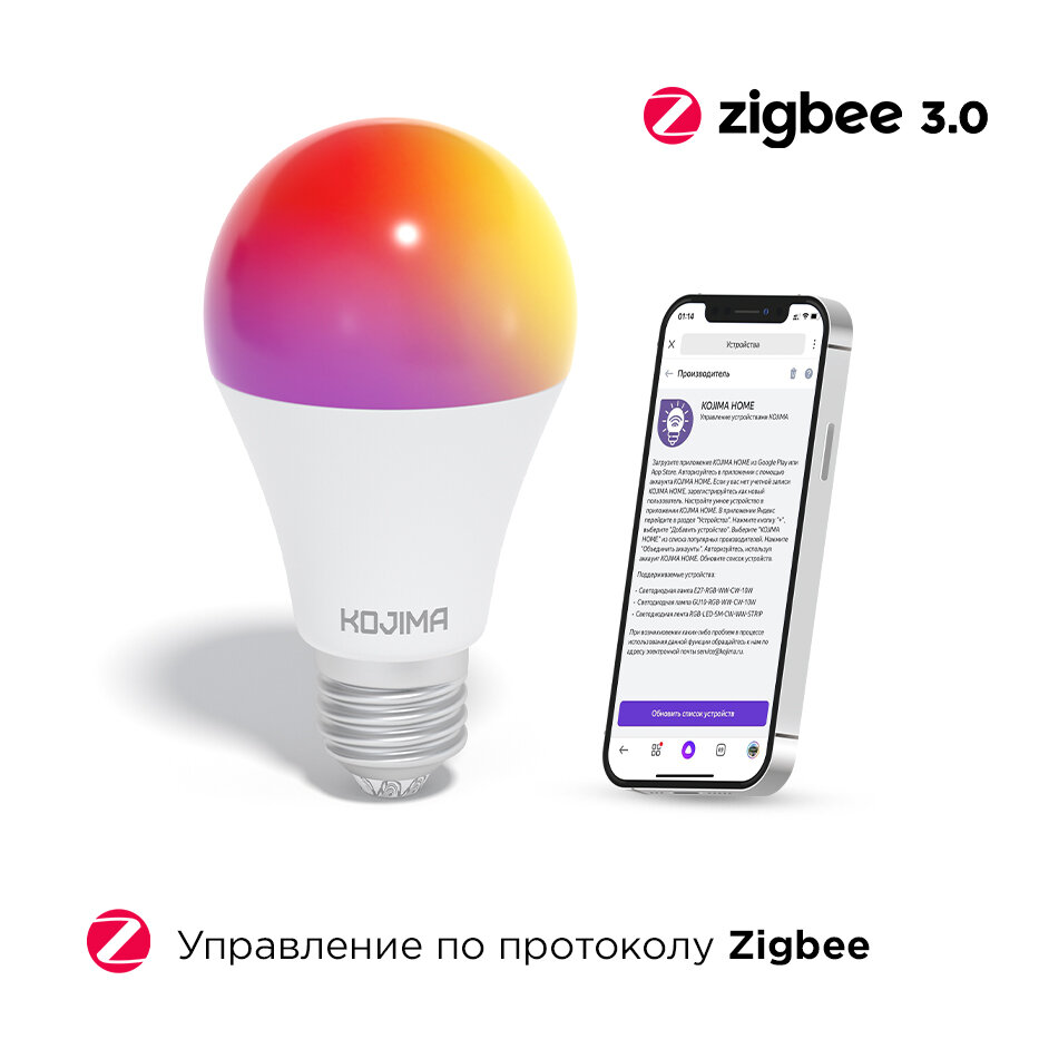 Умная светодиодная лампочка Е27 RGB Zigbee, Яндекс Алисой, Google Home, Марусей, Smart Bulb 10W интересное: