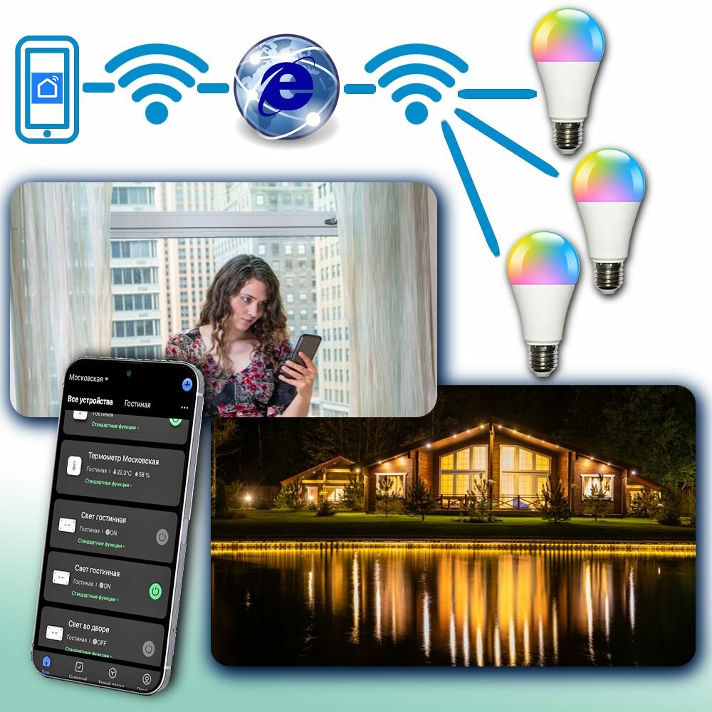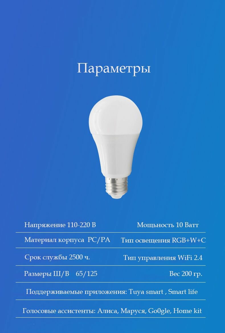 Умная лампочка, WiFi, Умный дом, Алиса, LED RGB, Tuya, Smart Life, Е27, 10W интересное: