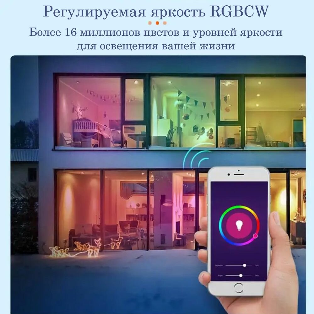 Умная лампочка, WiFi, Умный дом, Алиса, LED RGB, Tuya, Smart Life, Е27, 10W