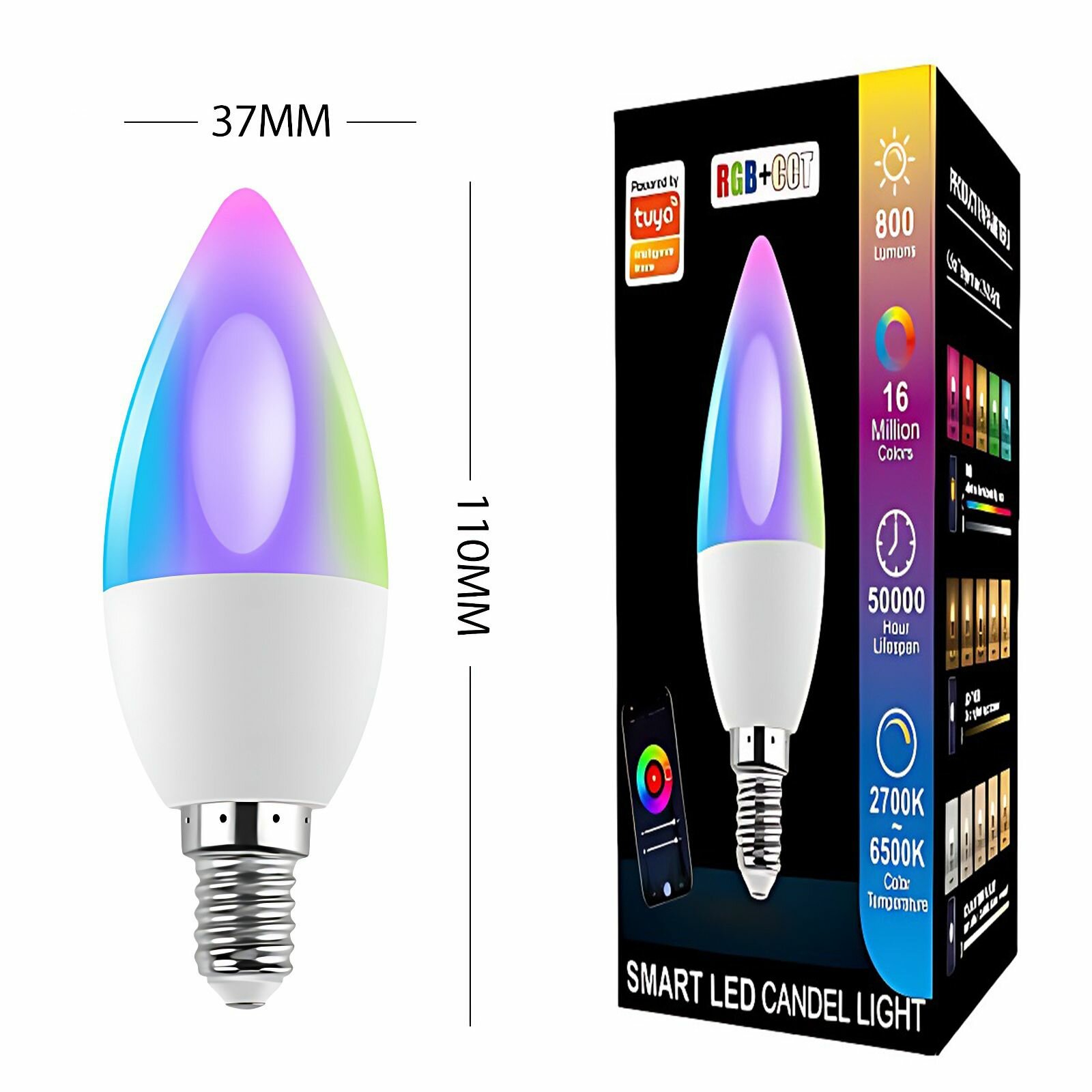 Умная лампочка WiFi Е14 RGBW 9W Tuya, Smart Life Алиса интересное: