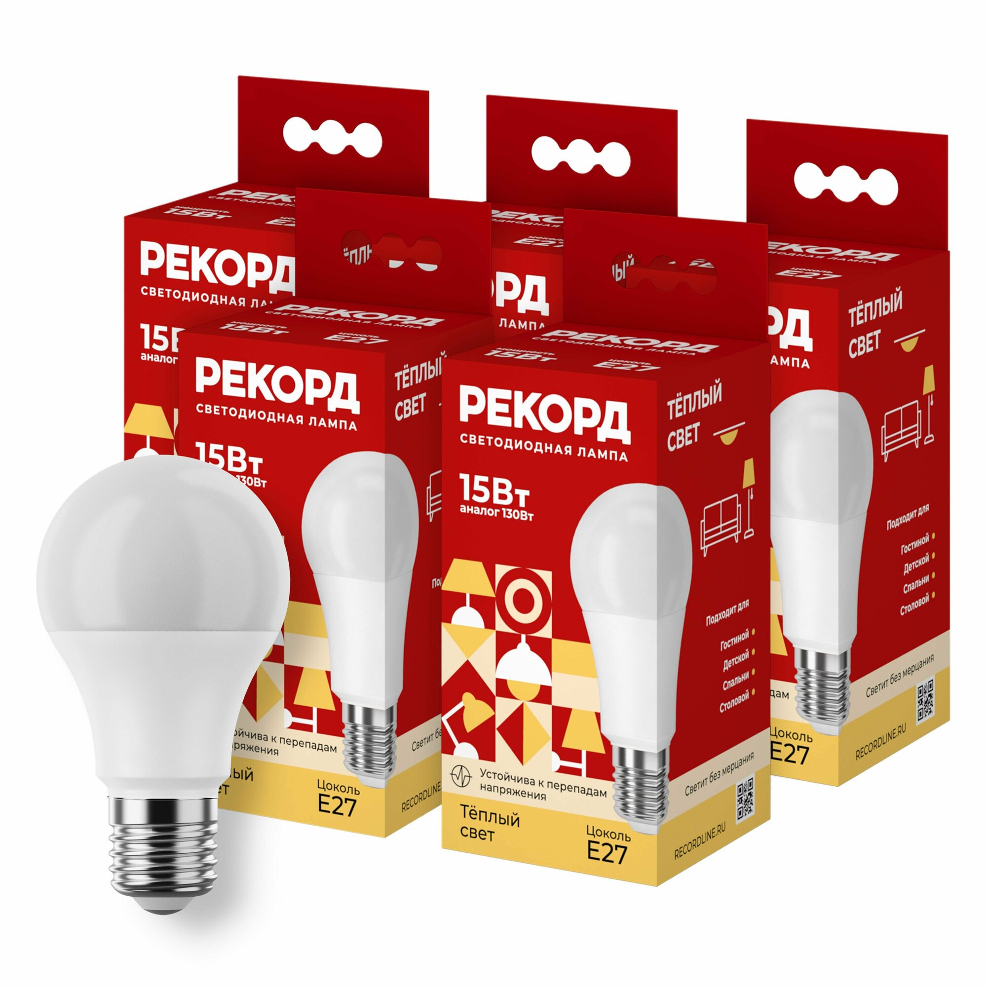 Набор светодиодных лампочек рекорд LED А60-U 15Вт Е27 3000К, 5 шт. интересное:
