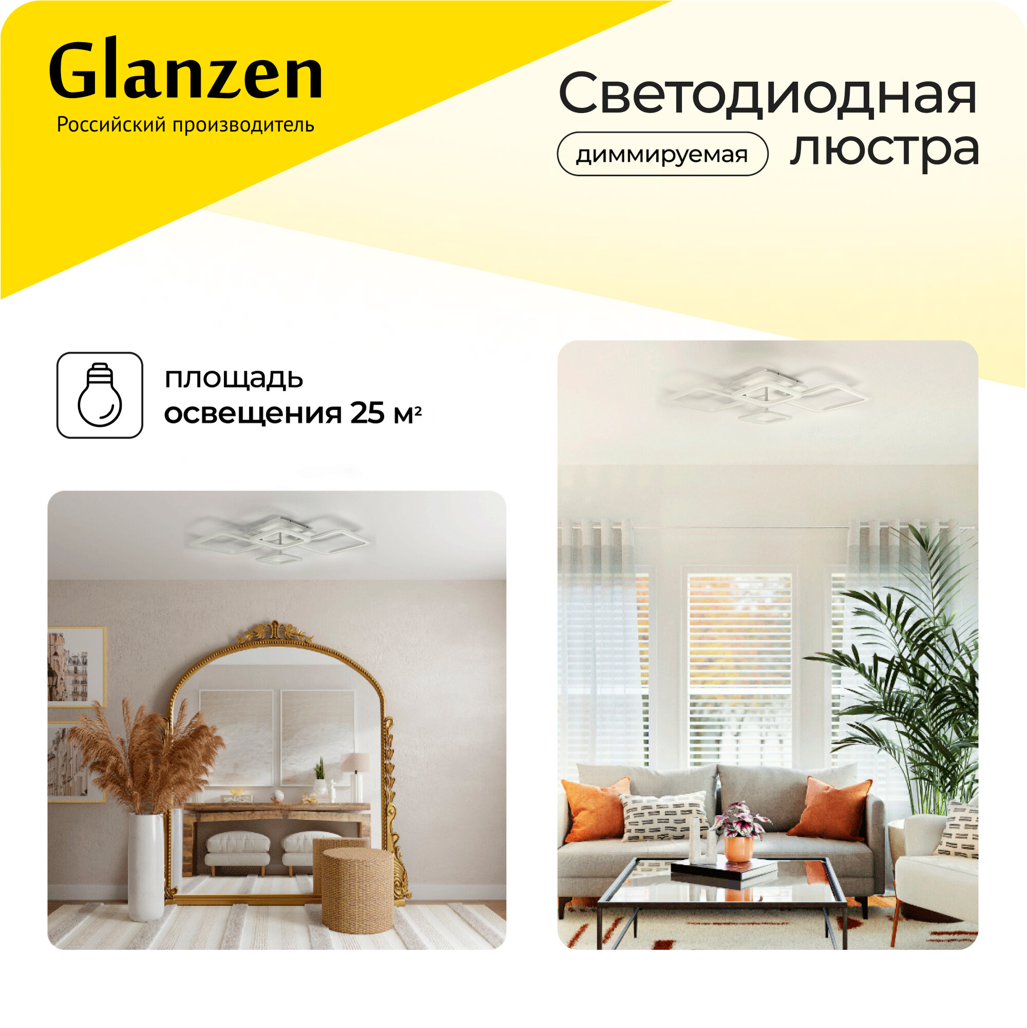 Светодиодная диммируемая люстра 3000-6500К 70Вт GLANZEN LED-0070-SQUARE-white 25 кв. м 4 режима с пультом управления интересное: