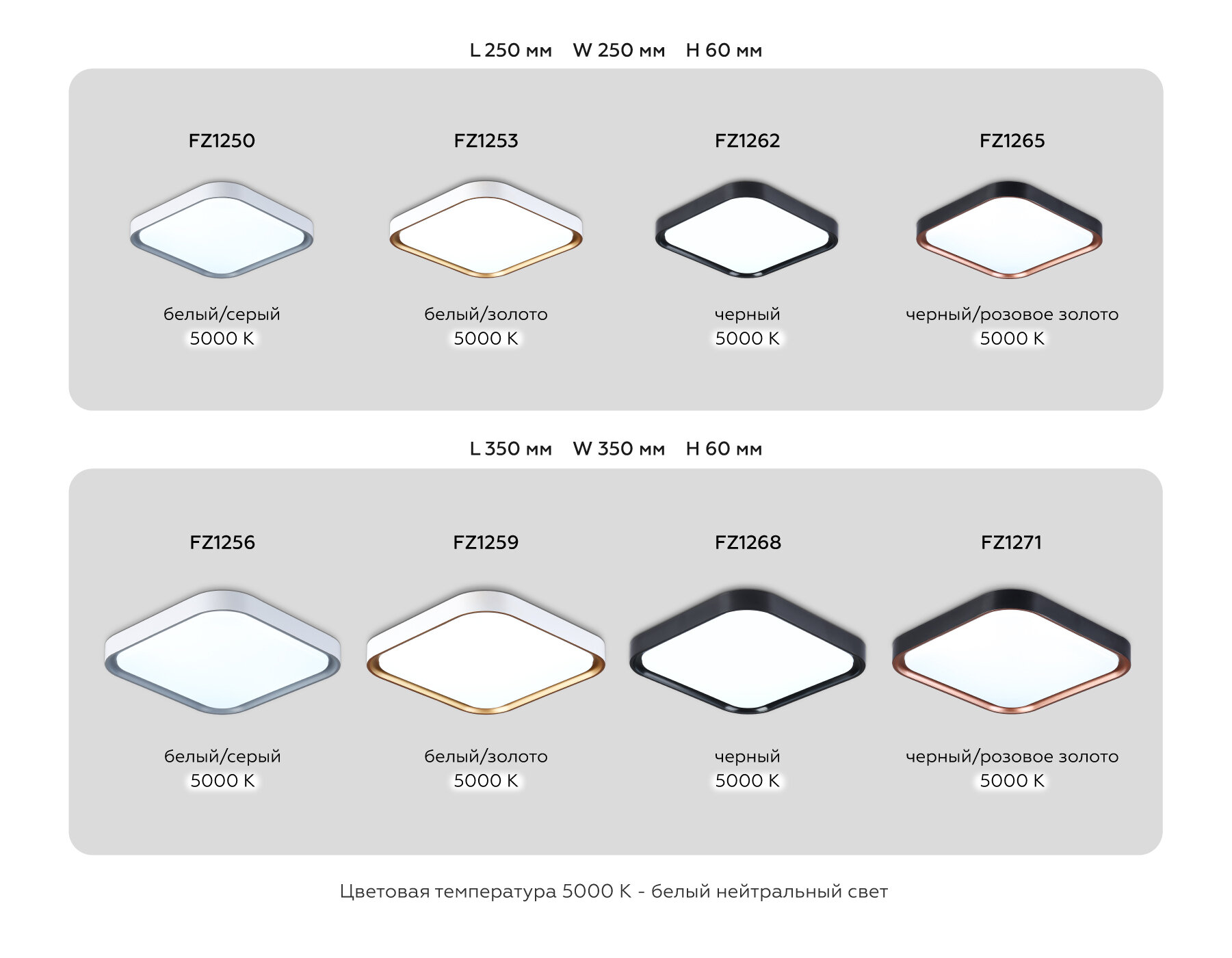 Потолочный светодиодный светильник 27W 5000K 350*350*60 (Без ПДУ), белый/серый