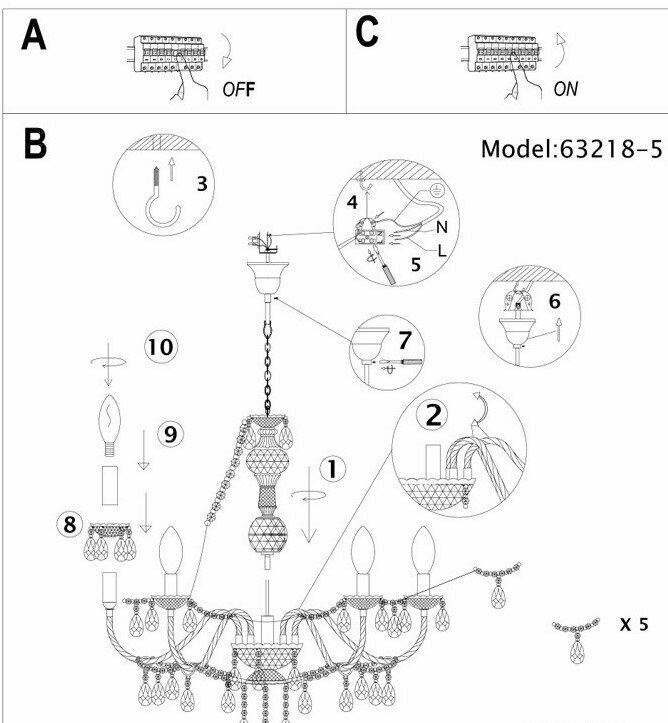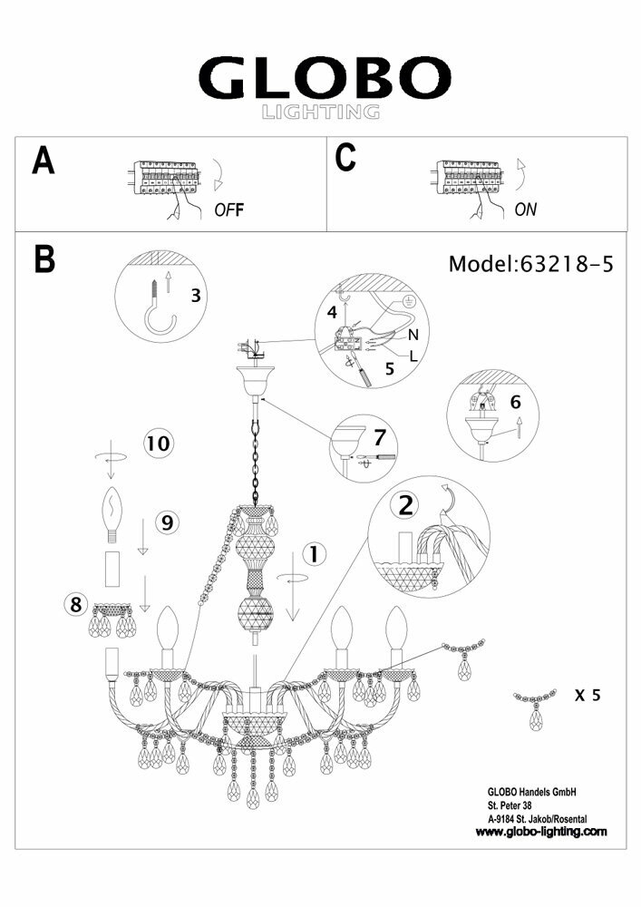 Подвесная люстра Globo Nevada 63218-5 интересное: