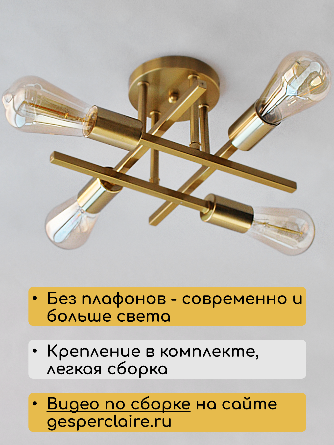 Люстра потолочная на кухню спальню коридор прихожую золото Gesper&Claire