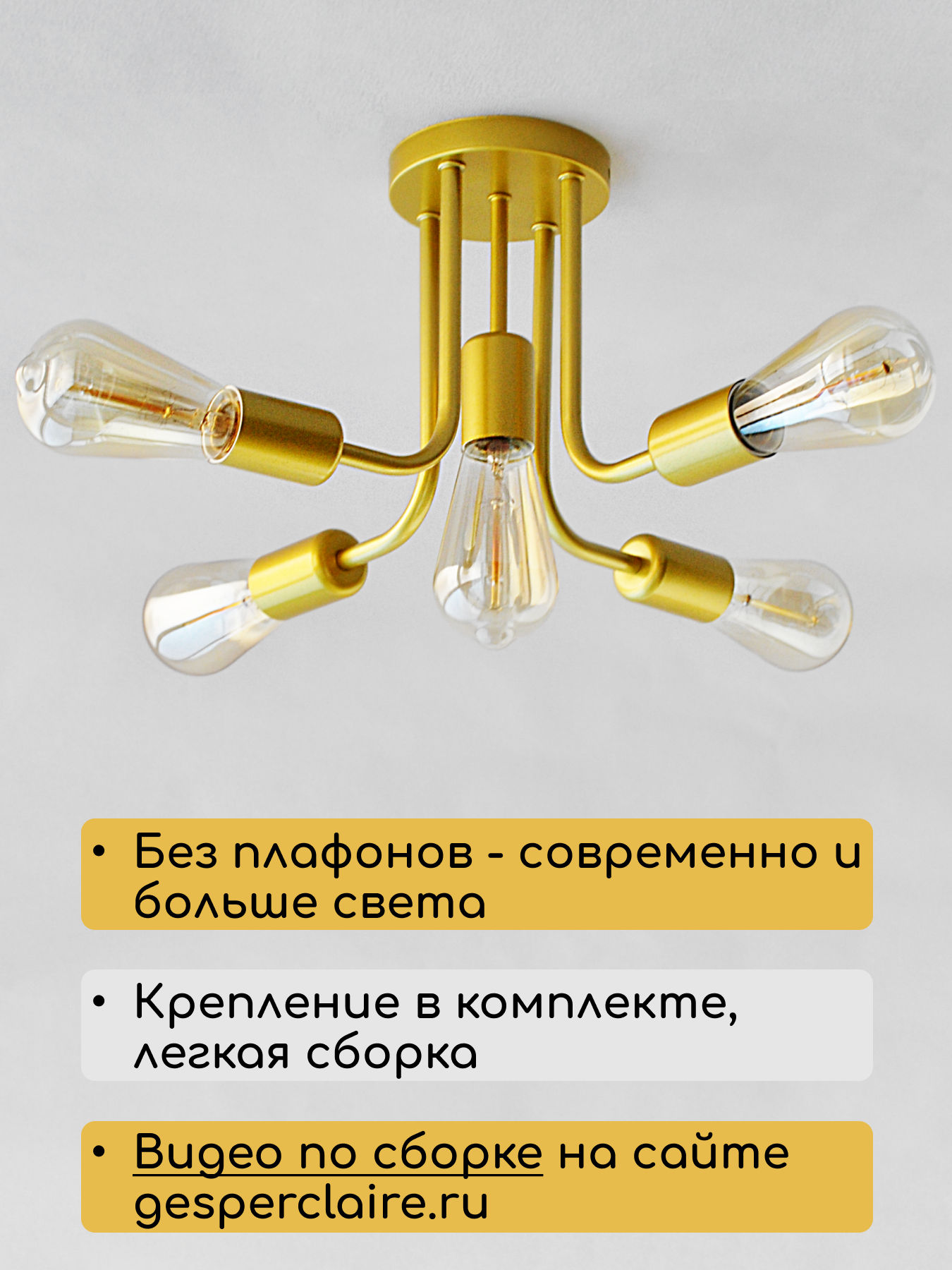 Люстра потолочная на кухню спальню коридор прихожую золото Gesper&Claire