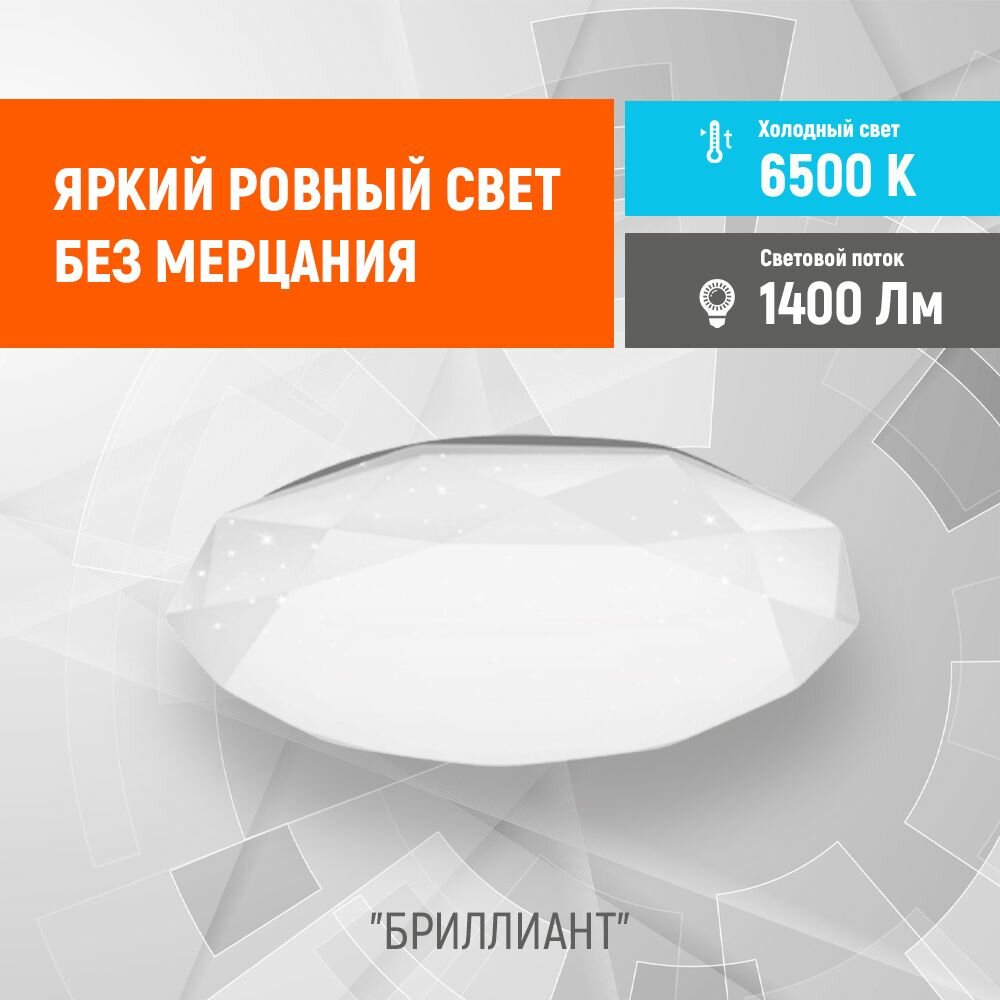 Светильник потолочный светодиодный накладной на кухню/ в спальню/ в детскую, 28Вт, люстра потолочная бриллиант, холодный свет, LEEK. Свет-к с/д (потолочный) СЛЛ 041 28Вт 6К Бриллиант (325x90) (10)
