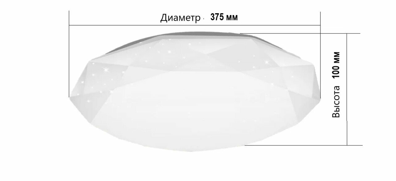 Светильник потолочный светодиодный накладной на кухню/ в спальню/ в детскую, 36Вт, люстра потолочная бриллиант, холодный свет, LEEK. Свет-к с/д (потолочный) СЛЛ 041 36Вт 6К Бриллиант (375x100) (10)
