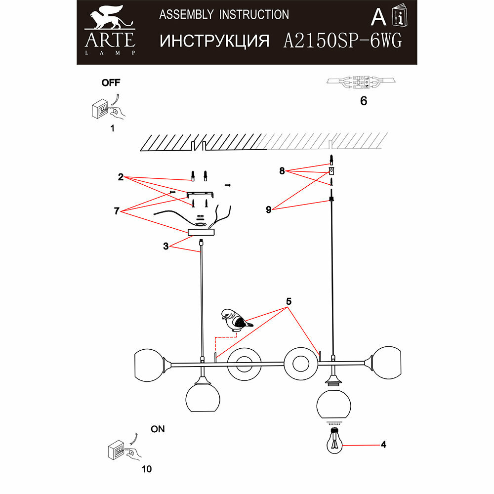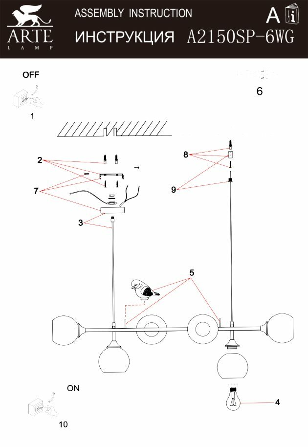 СохранитьArte Lamp Подвесная люстра Arte Lamp Gemelli A2150SP-6WG интересное: