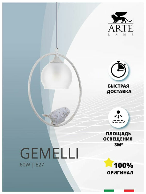 Светильники подвесные Со сменными лампами ARTE LAMP GEMELLI A2150SP-1WG