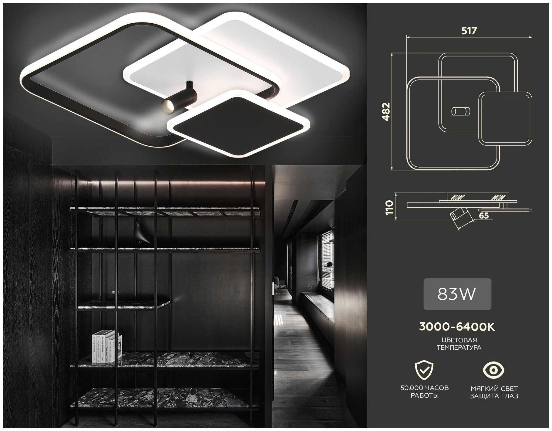 СохранитьПотолочный LED светильник LED светильник FL5120/3+1 WH/BK 83W белый/черный 3000K/4200K/6400K+4200K 517*482*110 (ПДУ ИК) интересное: