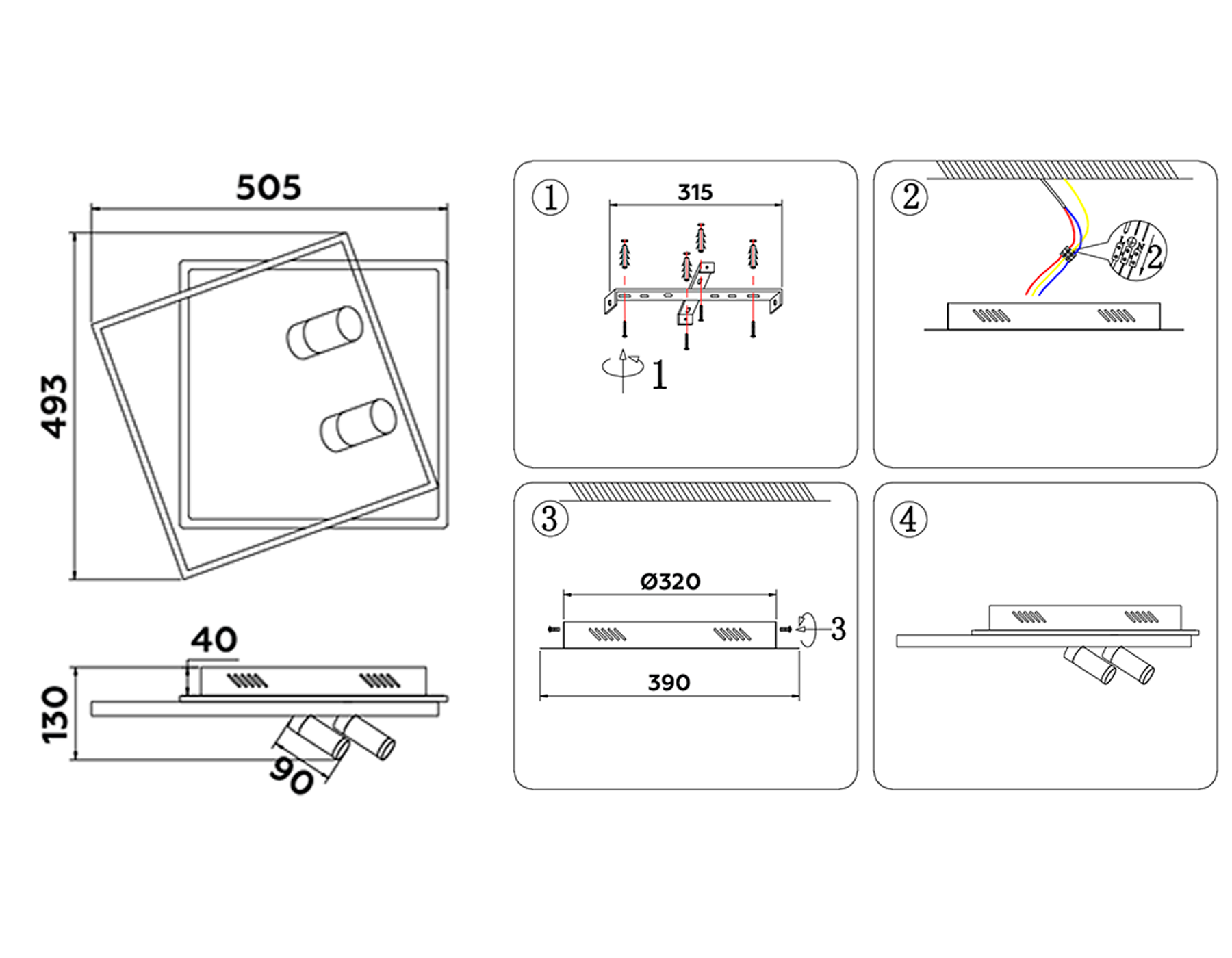 Настенно-потолочный светодиодный светильник с пультом FL5138/2+2 WH/BK белый/черный 77W 3000K/4200K/6400K+4200K 505*493*130 (ПДУ ИК)