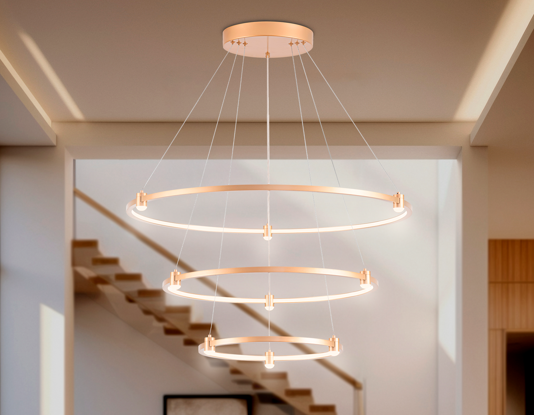 Подвесной светодиодный светильник FL5885/2 GD золото 45W 3000K/4200K/6400K D600/400*1200 (без ПДУ)