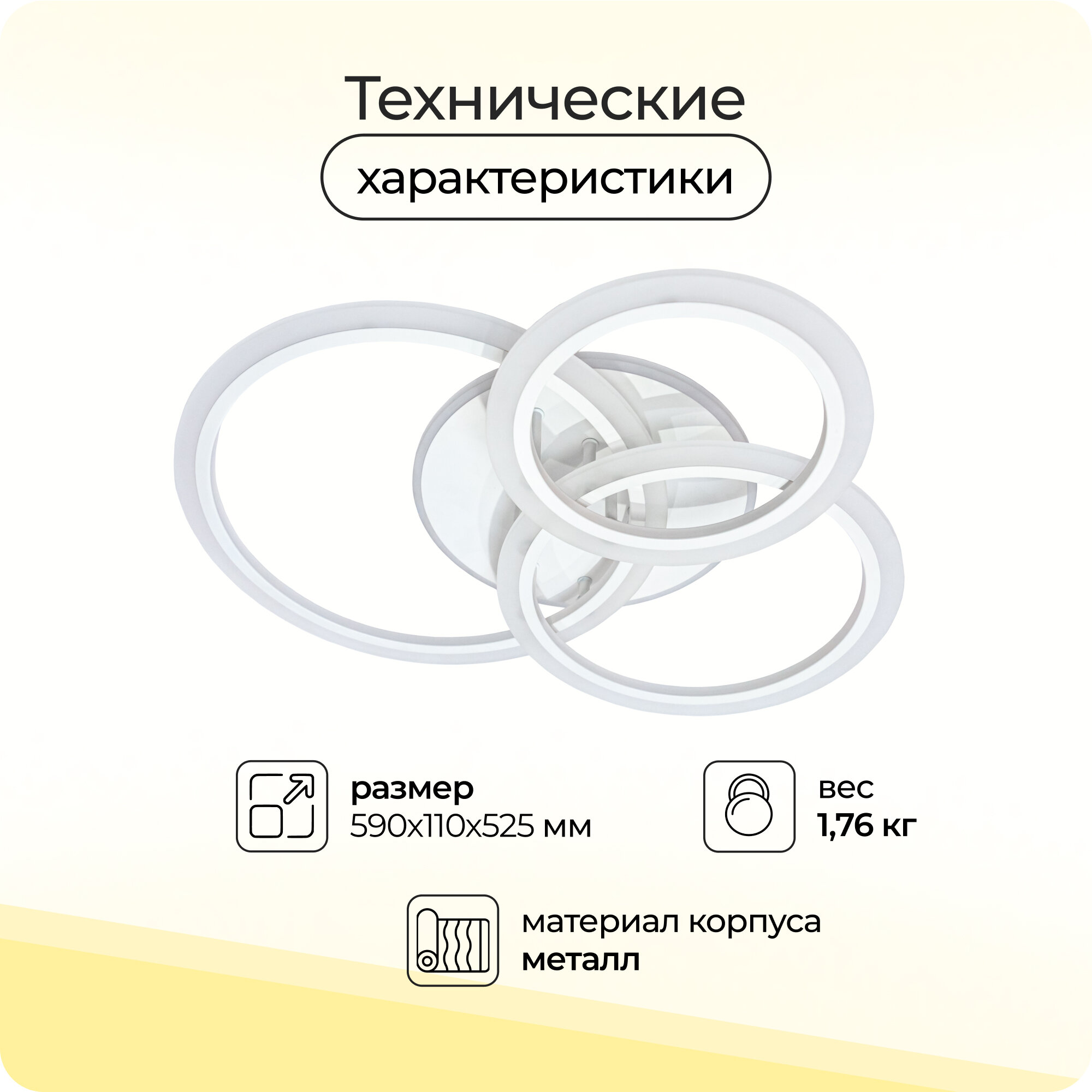 Люстра с пультом светодиодная потолочная 176W, 8 ламп, цветок, большая, белая, LEDCITY