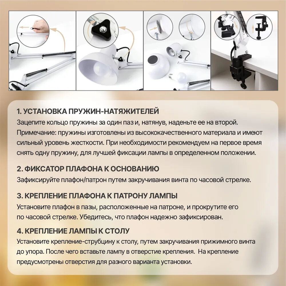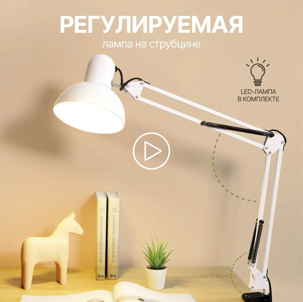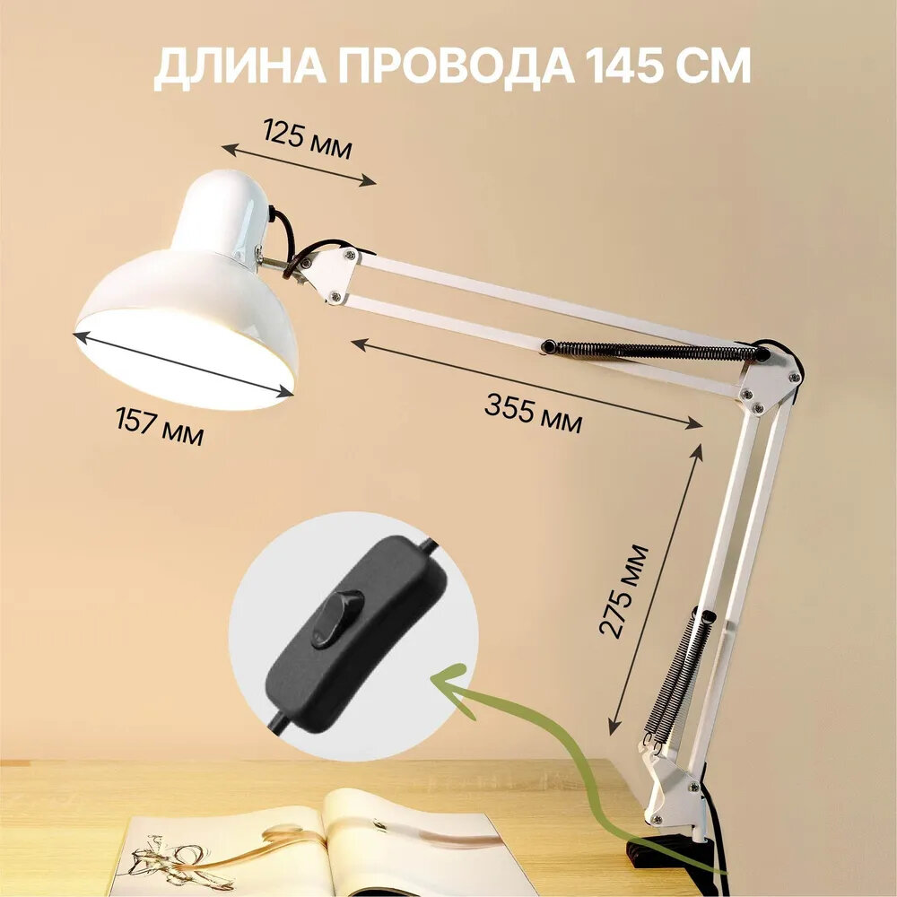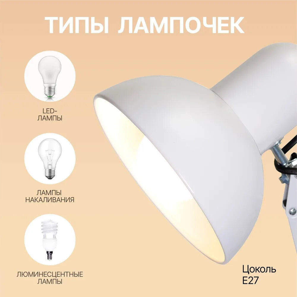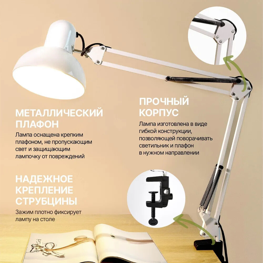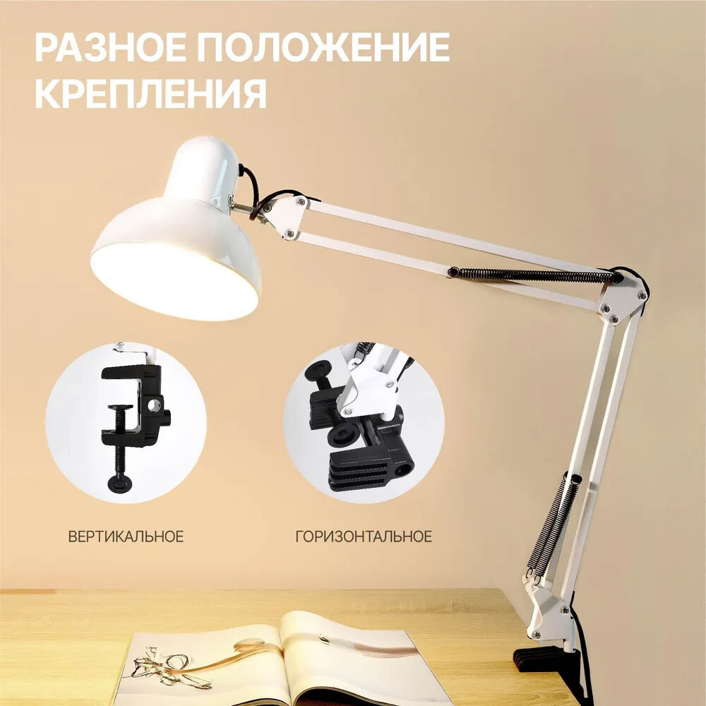 Настольная лампа для школьника на струбцине Е27 интересное: