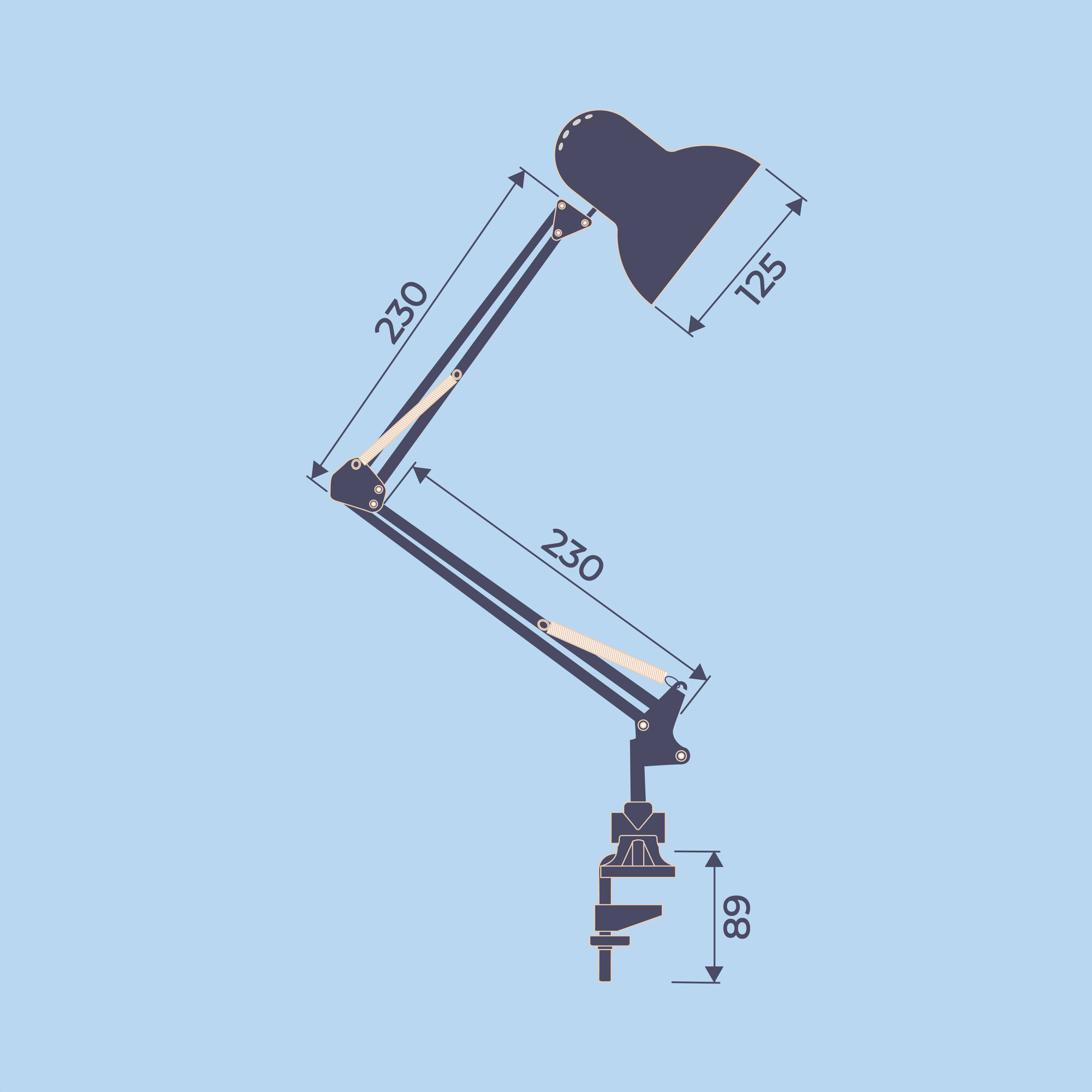Лампа настольная Homsly с цоколем Е27, крепление струбцина, цвет корпуса глянцевый белый, TTL_003