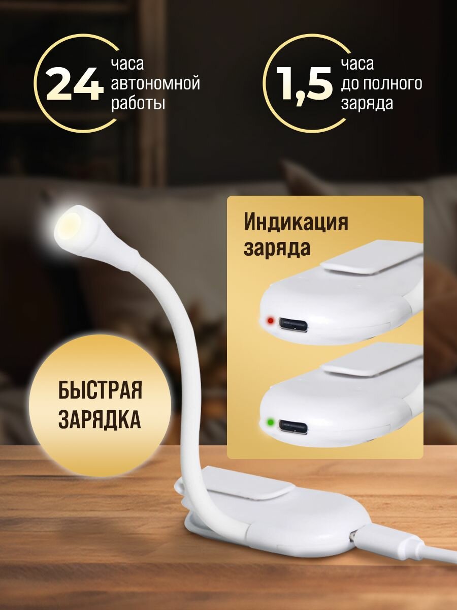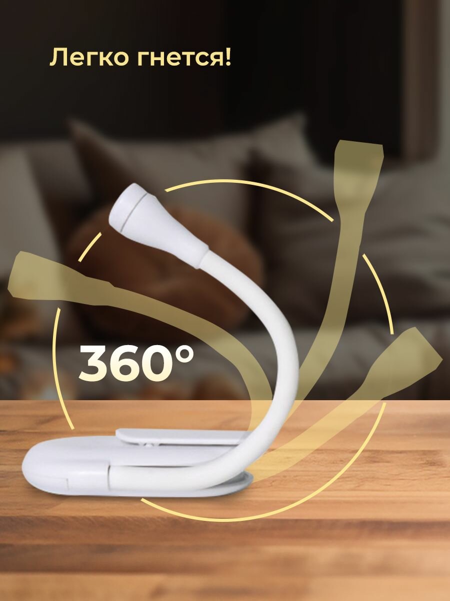Лампа для чтения на прищепке Classmark светильник, подсветка для книги, гибкий мини фонарик беспроводной и портативный, 3 температуры света и регулировка яркости, до 24 часов работы на одном заряде интересное: