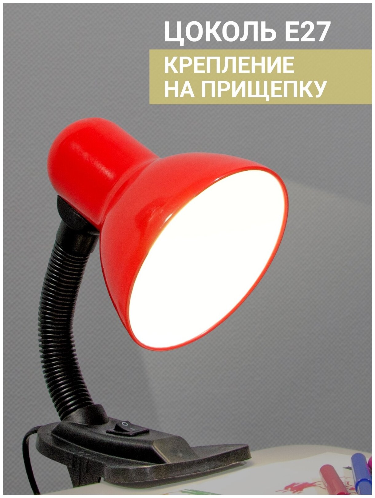 Светильник настольный на прищепке DL-2- 60W-E27, красный VKL electric интересное: