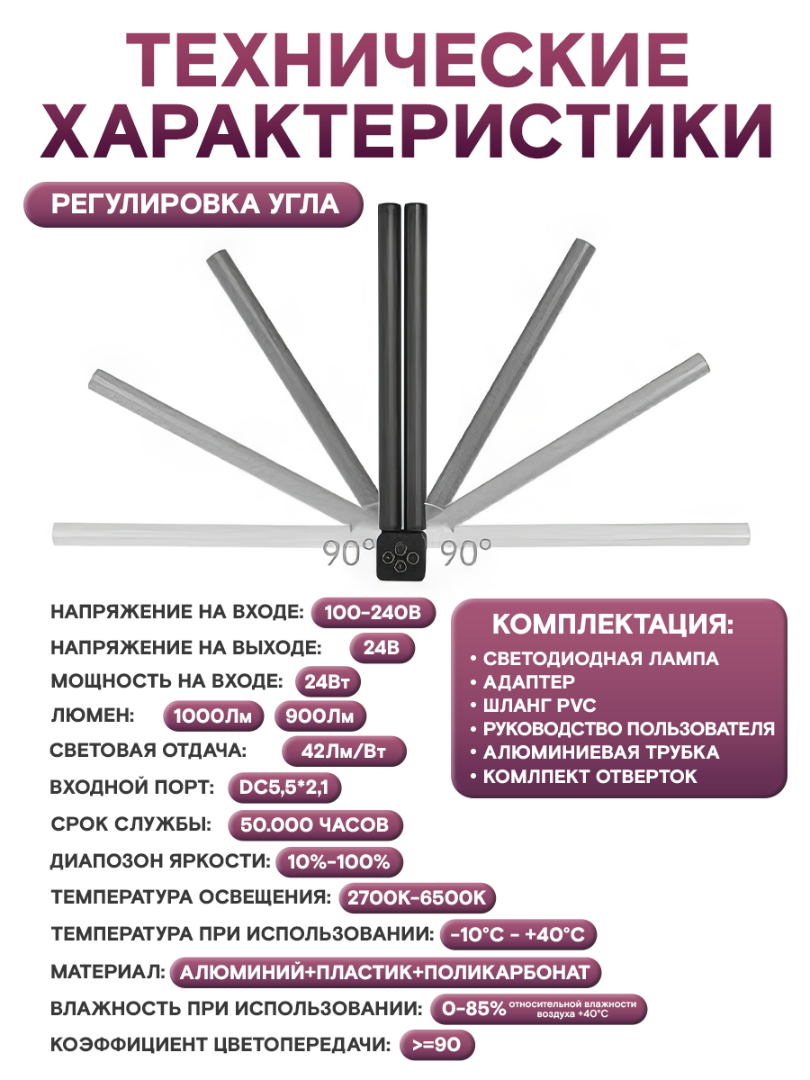 | Свет | дневной белый / теплый белый / холодный белый |