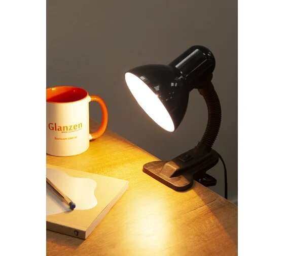 Купить Настольный светильник Е27 GLANZEN DL-0001-40-C-black на прищепке черный / настольная лампа для школьника, для дома, освещение в спальню, детскую, прихожую