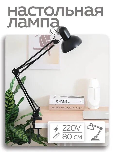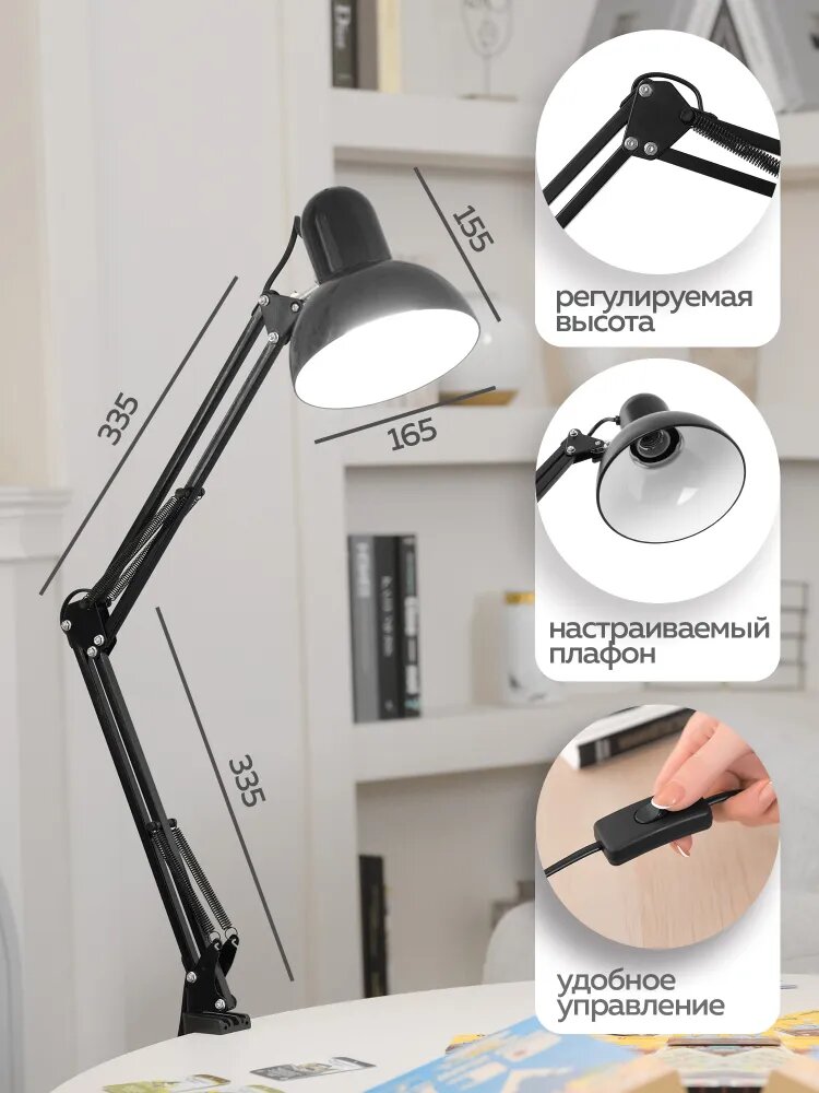 Лампа настольная Homsly с цоколем Е27, крепление струбцина, цвет корпуса матовый черный, TTL_002