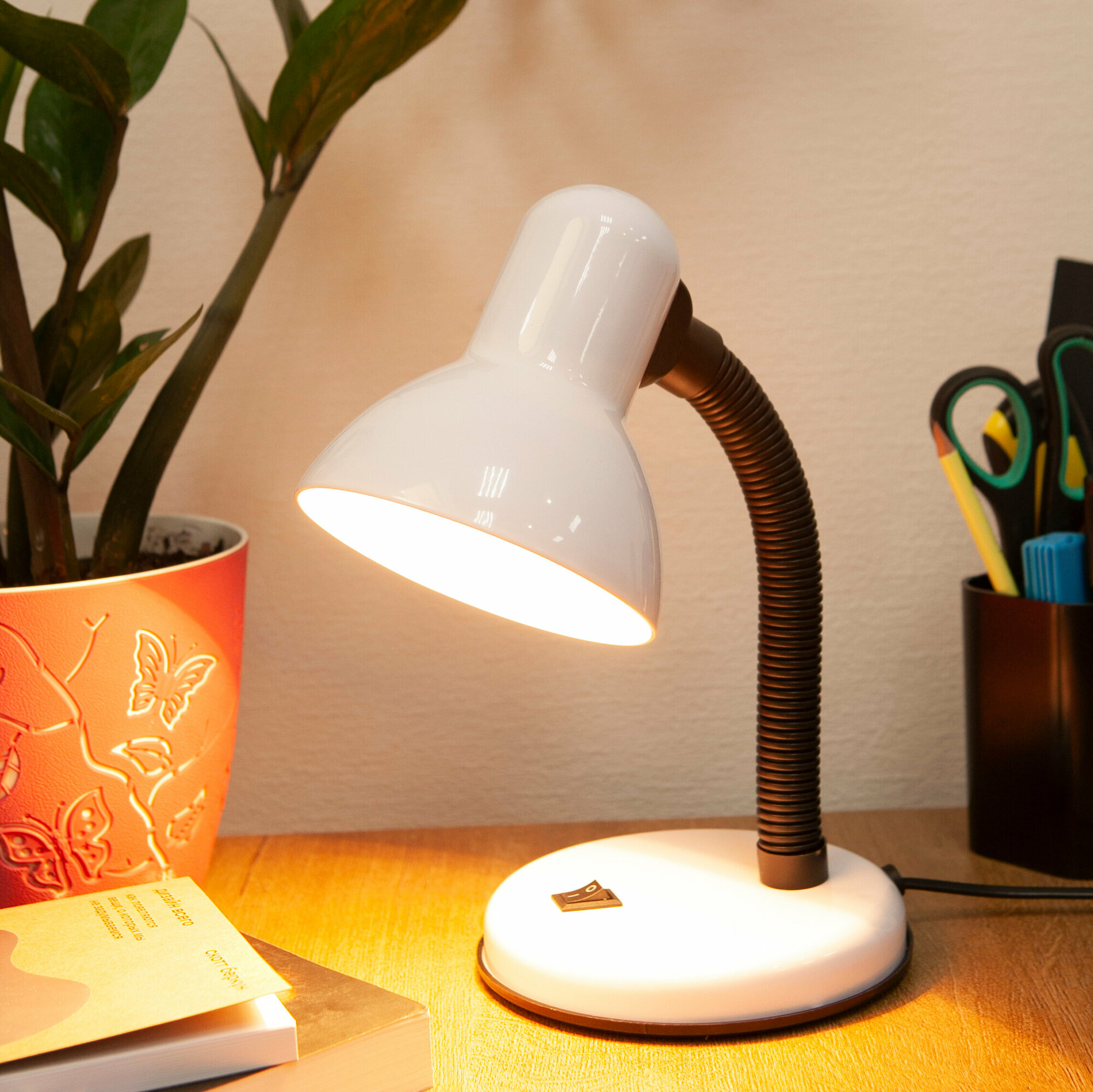Настольный светильник Е27 GLANZEN DL-0001-40-R-white с основанием белый / настольная лампа для школьника, для дома, освещение в спальню, детскую, прихожую интересное:
