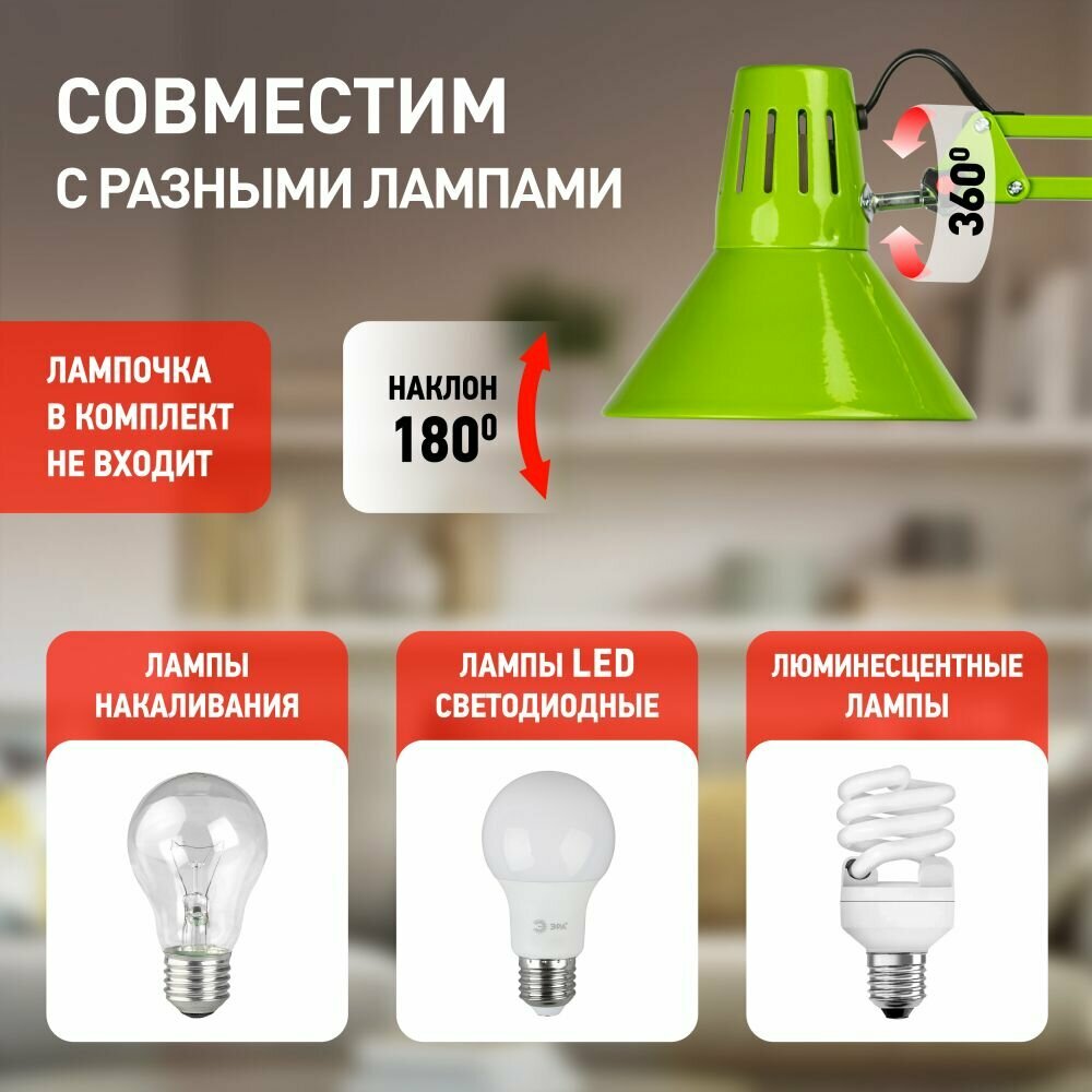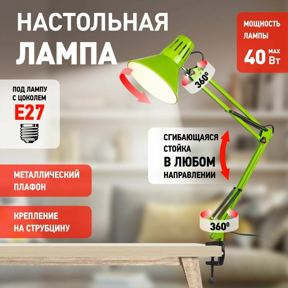 Настольный светильник ЭРА N-121-E27-40W-GR Е27 на струбцине зеленый интересное: