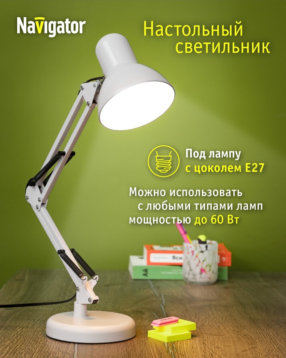 Светильник настольный Navigator 61 643 NDF-D023 под лампу E27, на основании, белый