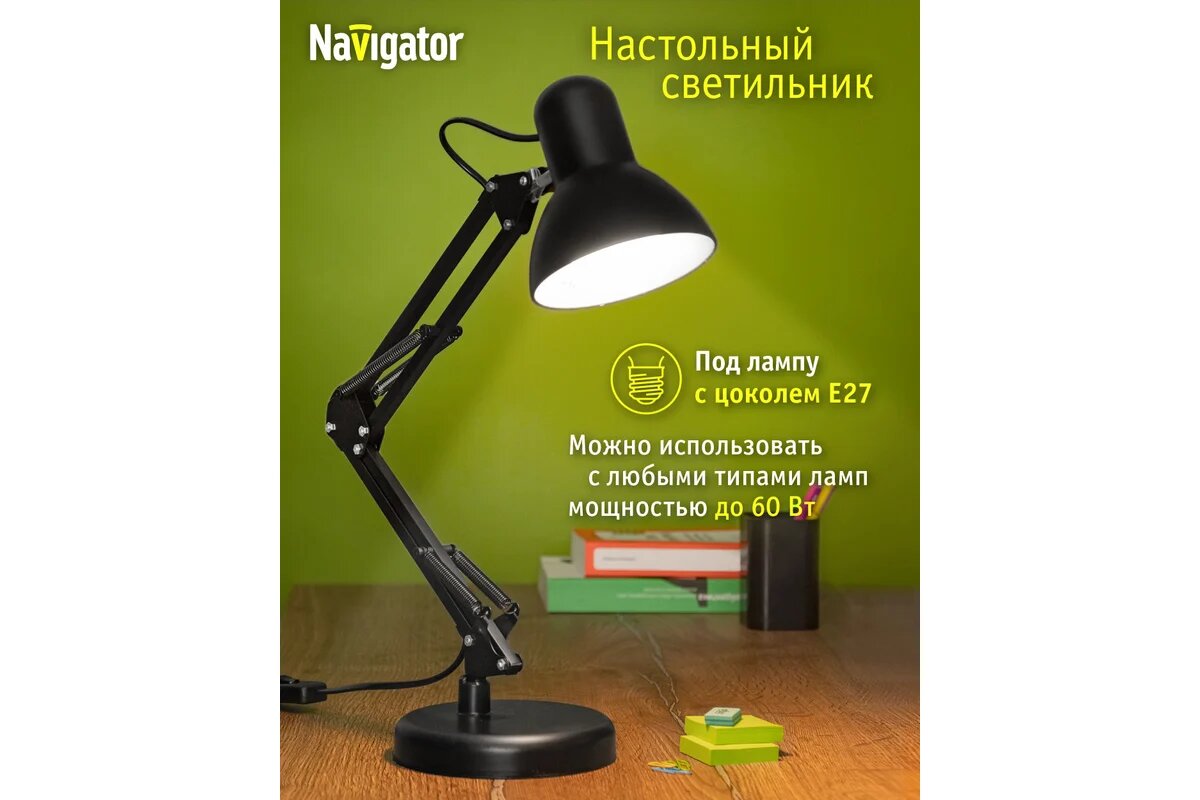 Светильник настольный Navigator 61 644 NDF-D023 под лампу E27, на основании, черный