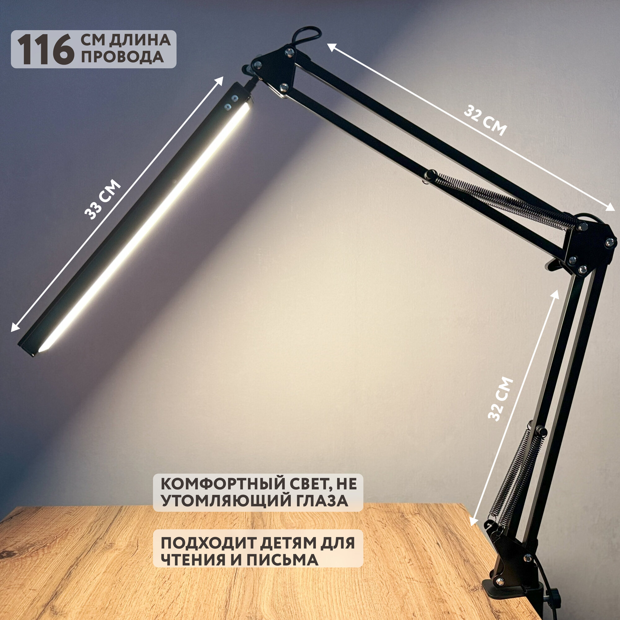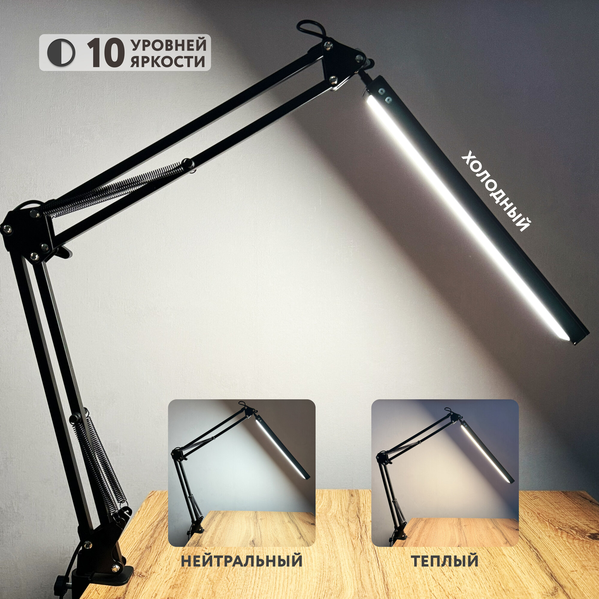 Лампа настольная светодиодная 12Вт на струбцине черный цвет Desk lamp Black/LED/1100Lm/60000 цветовая температура интересное: