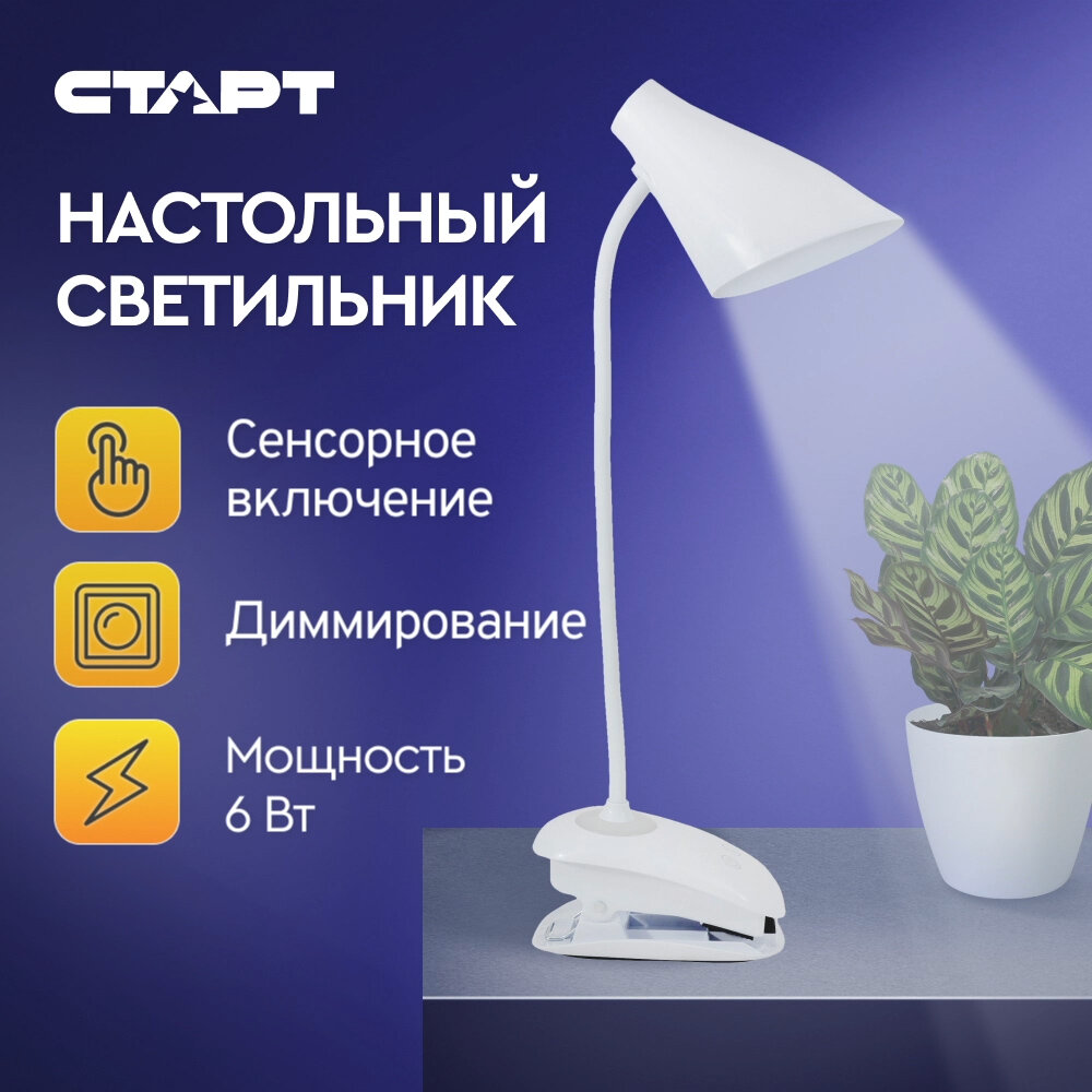 Лампа настольная старт светодиодный светильник для школьника на прищепке, сенсорный, регулировка яркости, зарядка телефона