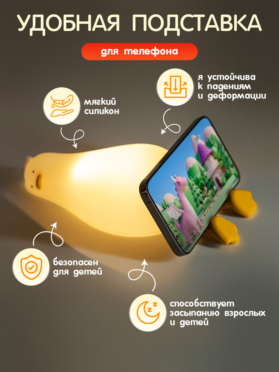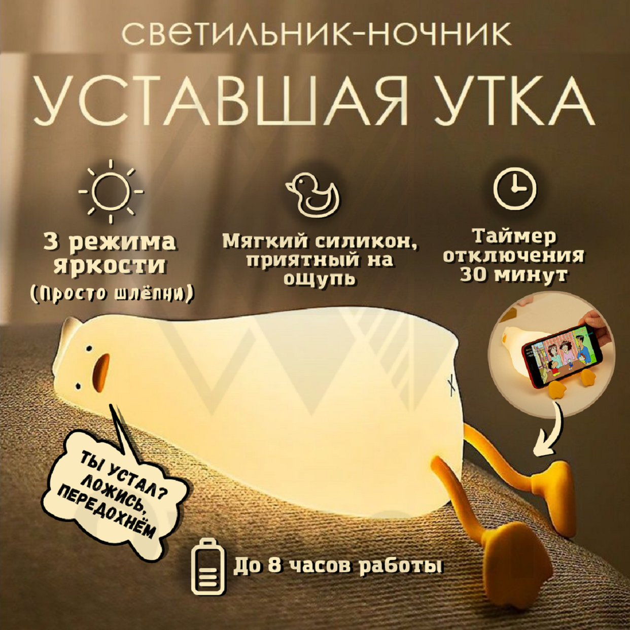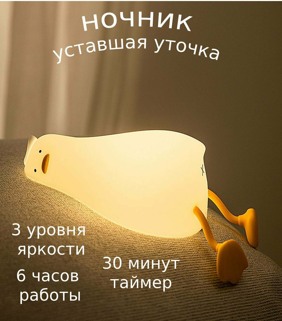 Ночник Уставшая уточка (с зарядным кабелем USB Type-C) беспроводной детский ночник, светильник, подставка под телефон, утка интересное: