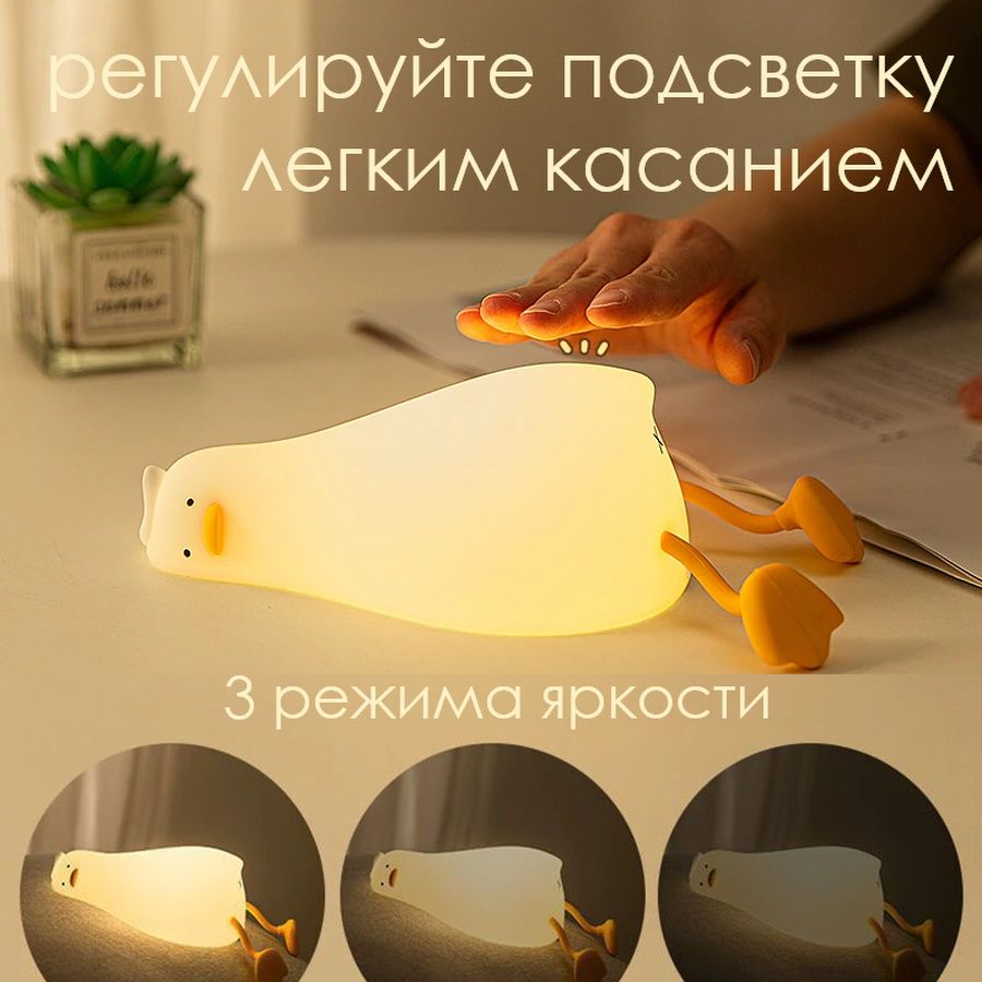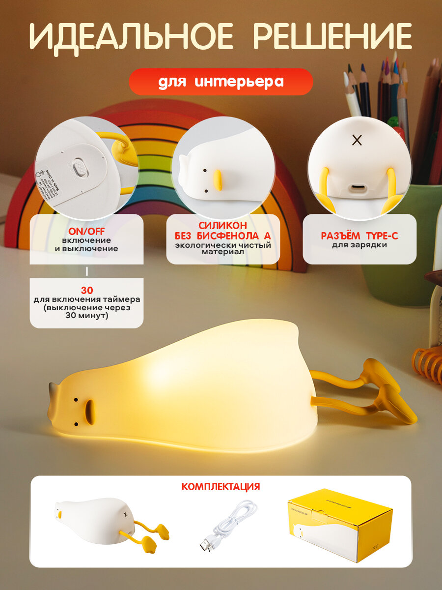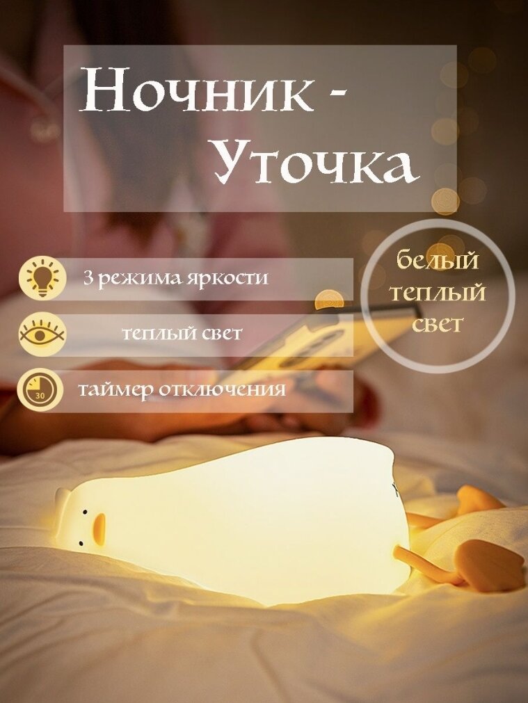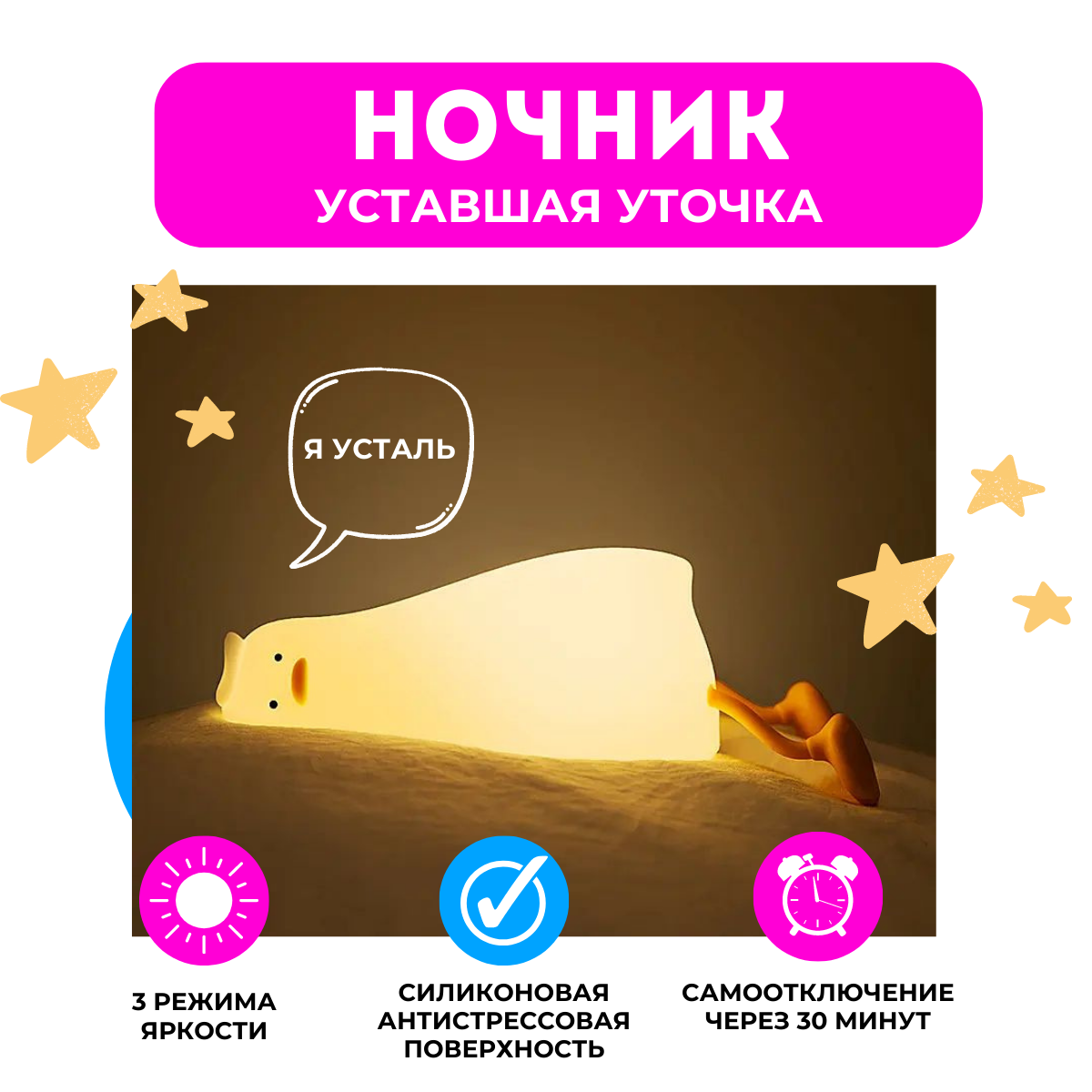 Ночник Уставшая уточка (с зарядным кабелем USB Type-C) беспроводной детский ночник, светильник, подставка под телефон, утка интересное: