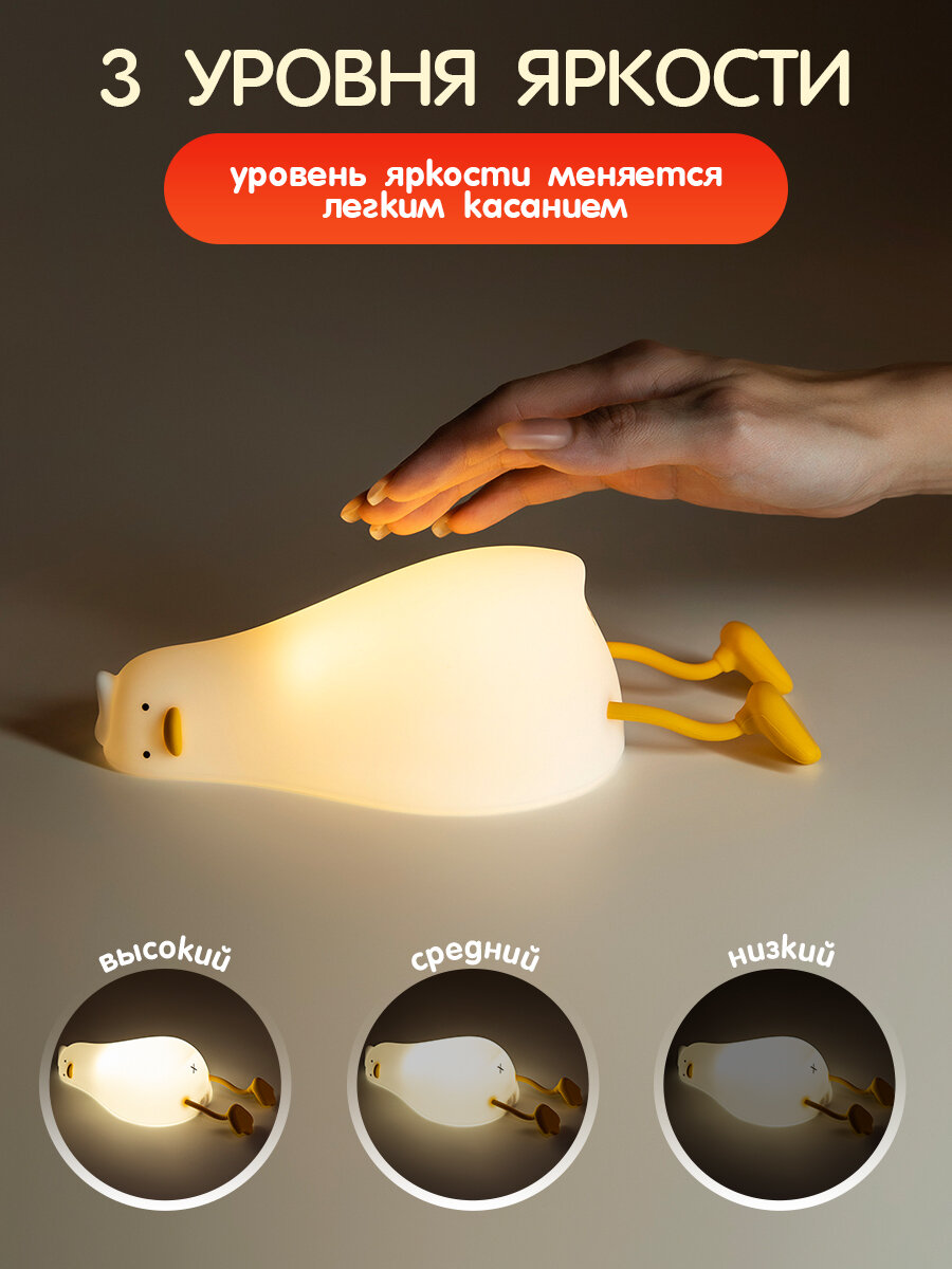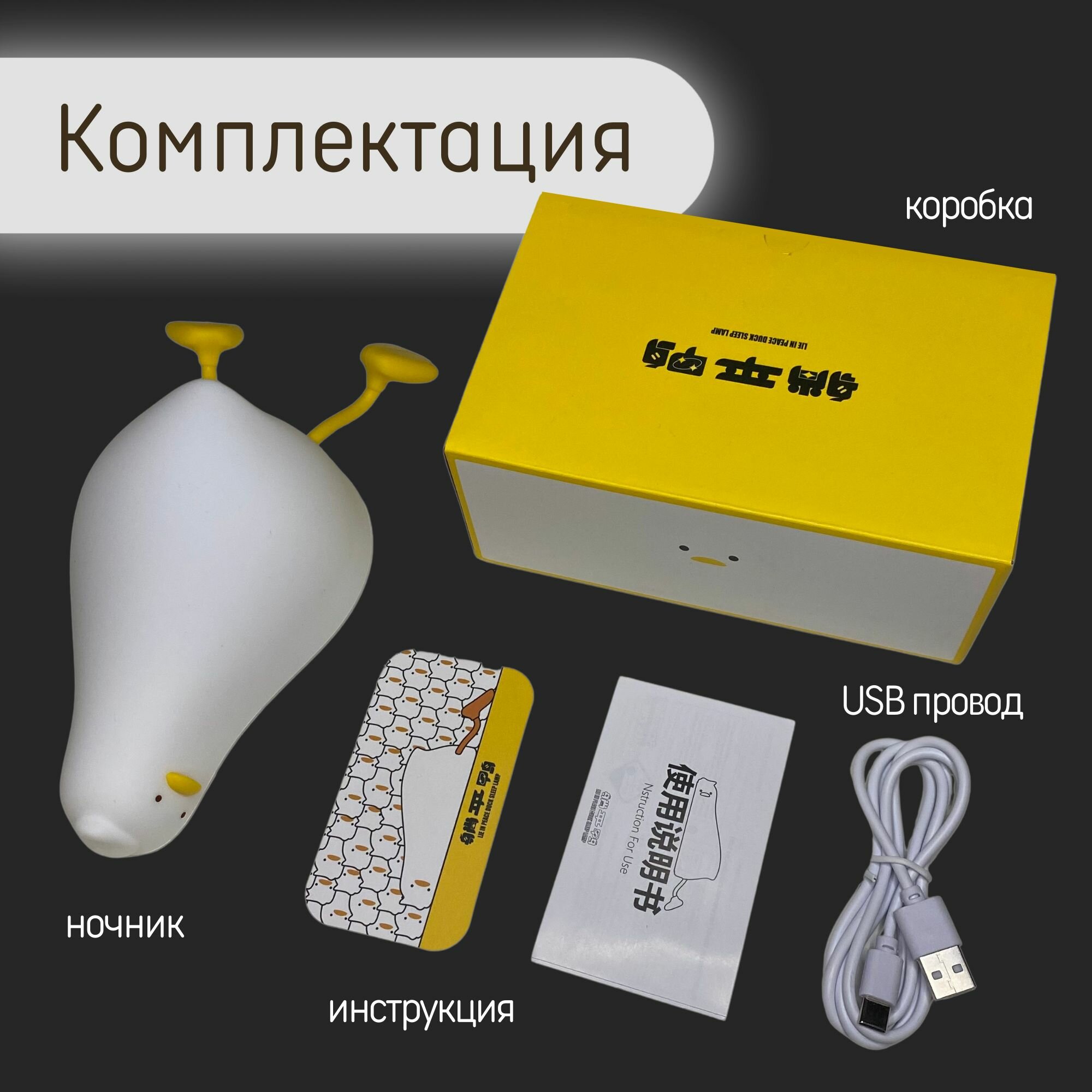 Купить Ночник Уставшая уточка (с зарядным кабелем USB Type-C) беспроводной детский ночник, светильник, подставка под телефон, утка