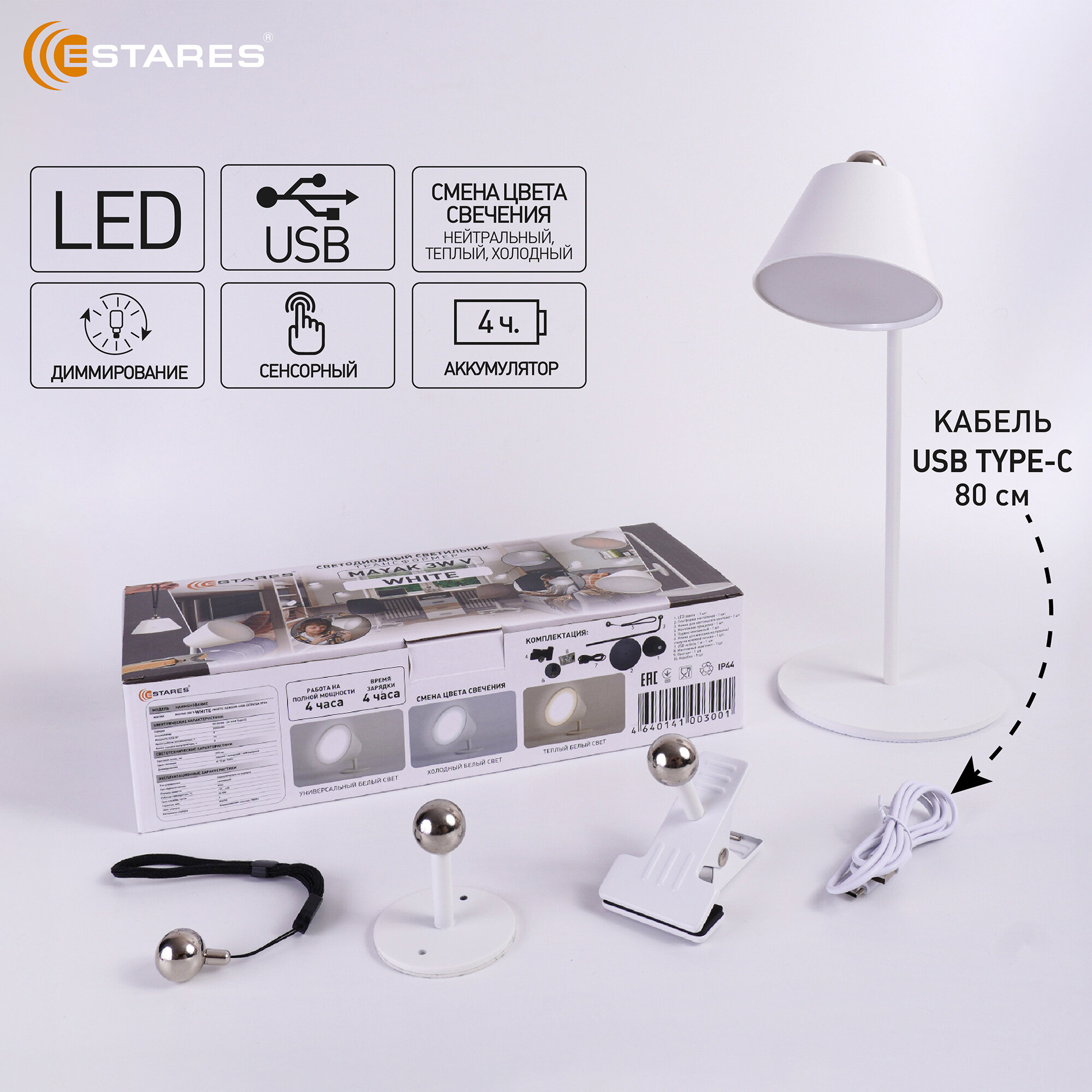Cветодиодный светильник трансформер MAYAK 3W V-WHITE-SENSOR-USB-DC5V/2A-IP44 интересное:
