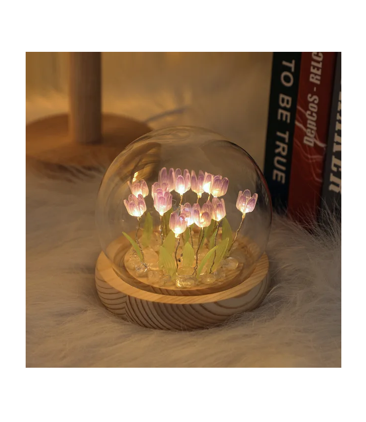 Декоративный светодиодный ночник тюльпаны / Светильник ночник цветы в колбе 10х10 см. Фиолетовый