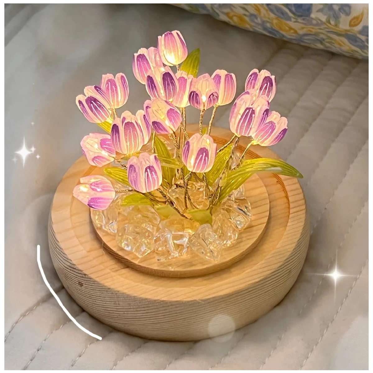 Декоративный светодиодный светильник Цветы / Настольный ночник в виде тюльпанов, розовый