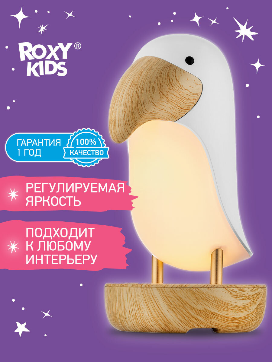 Ночник детский интерьерный TOUCAN от ROXY-KIDS, USB Type-C, с аккумулятором для детской, цвет белый