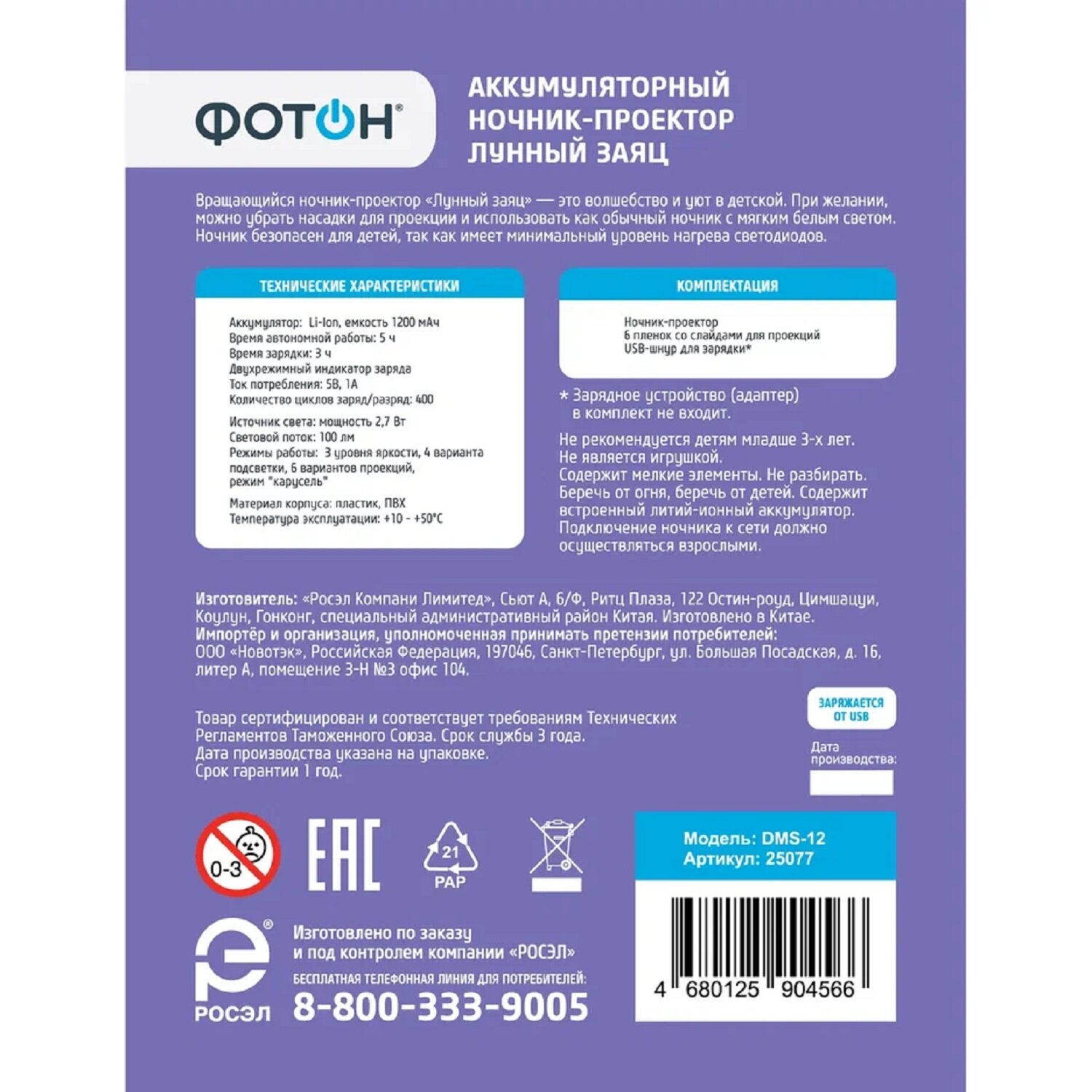 Ниже Вы можете прочитать отзывы на Ночник-проектор аккумуляторный Фотон Лунный заяц, ознакомится с подробными характеристиками, посмотреть интересные обзоры и фотографии на Ночник-проектор аккумуляторный Фотон Лунный заяц.