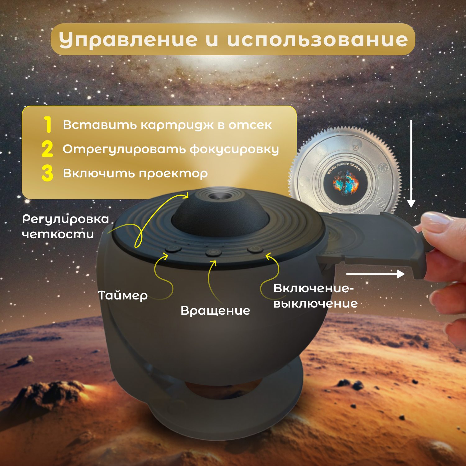 Купить Планетарий-проектор,детский ночник со светодиодным звездным проектором Night Light, HD Galaxy, вращение на 360 , синхронизация, бесшумный дизайн, черный