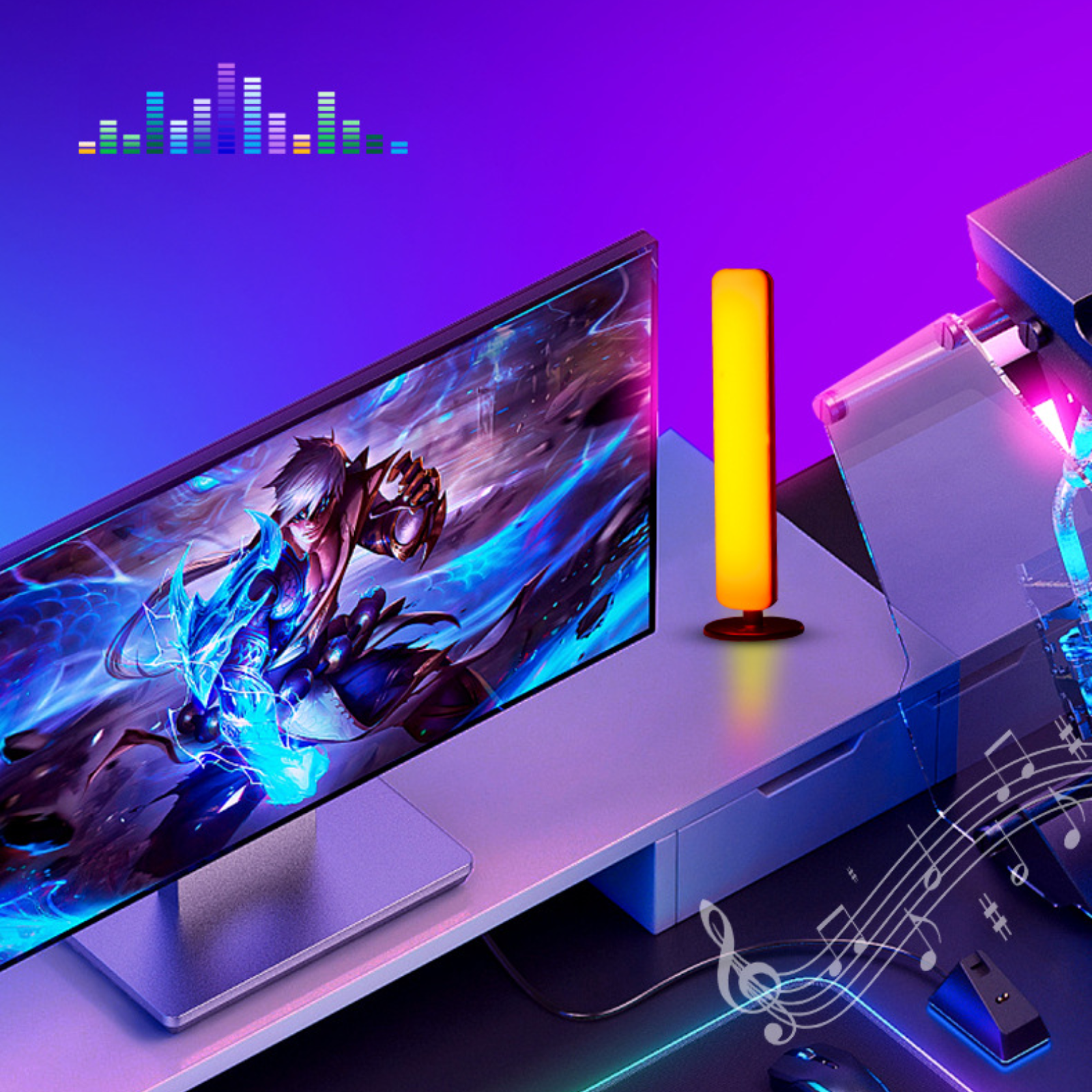 Светодиодная неоновая LED лампа 2 шт. для зоны гейминга подвестка рабочего места SkyLine NEON, управление с телефона, RGB интересное: