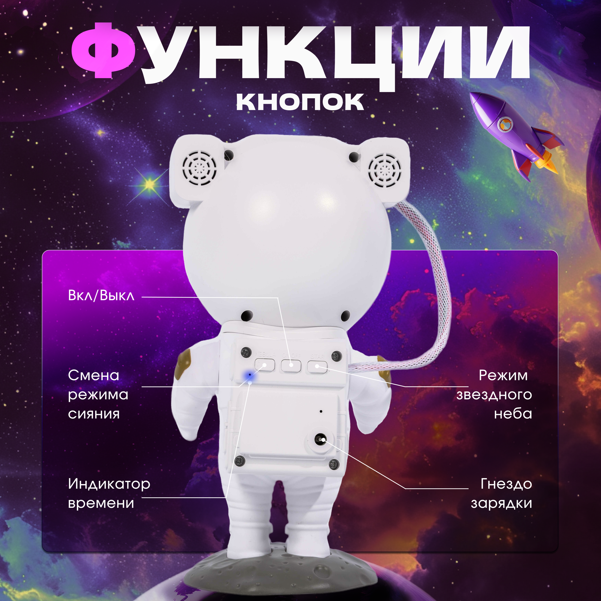 Детский ночник-проектор от Nebula "Космонавт", звездное небо