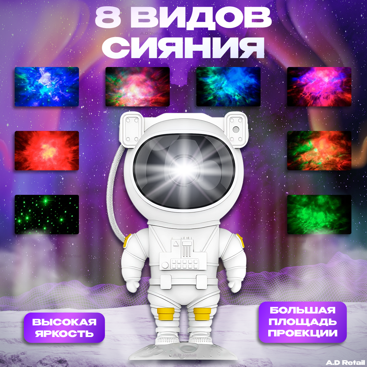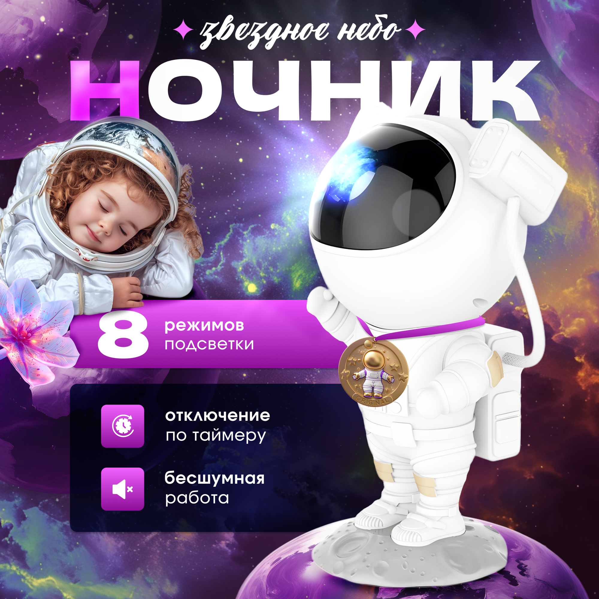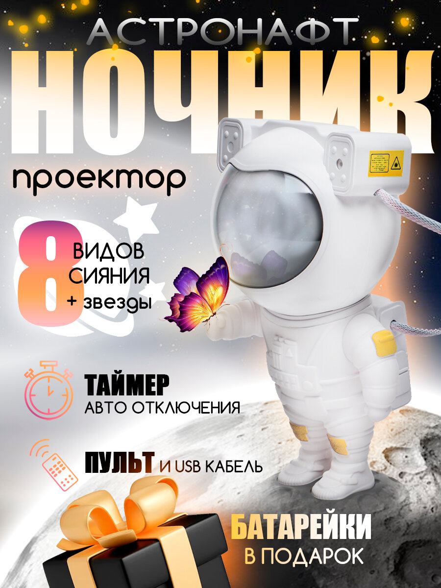 Детский ночник-проектор "Космонавт", декоративное освещение с 8 режимами, идеальная детская игрушка для сна