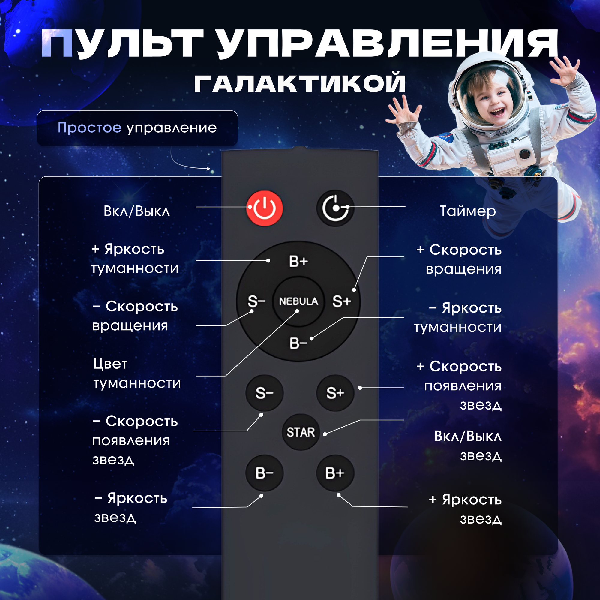 Детский ночник-проектор звёздного неба Космонавт интересное: