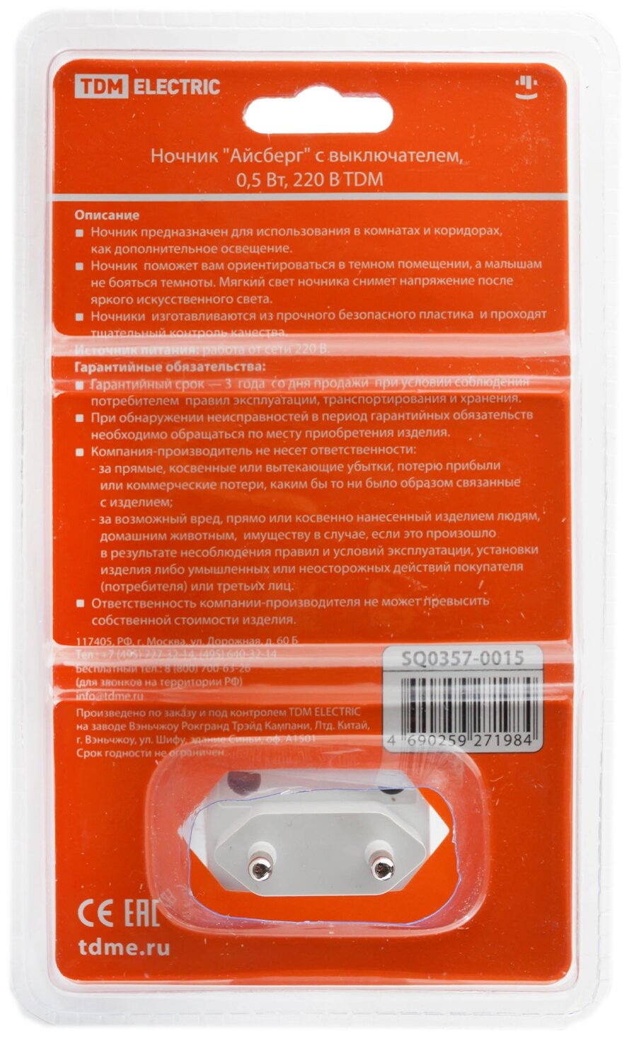 Ночник "Айсберг" с выключателем, 0,5 Вт, 220 В TDM {SQ0357-0015}